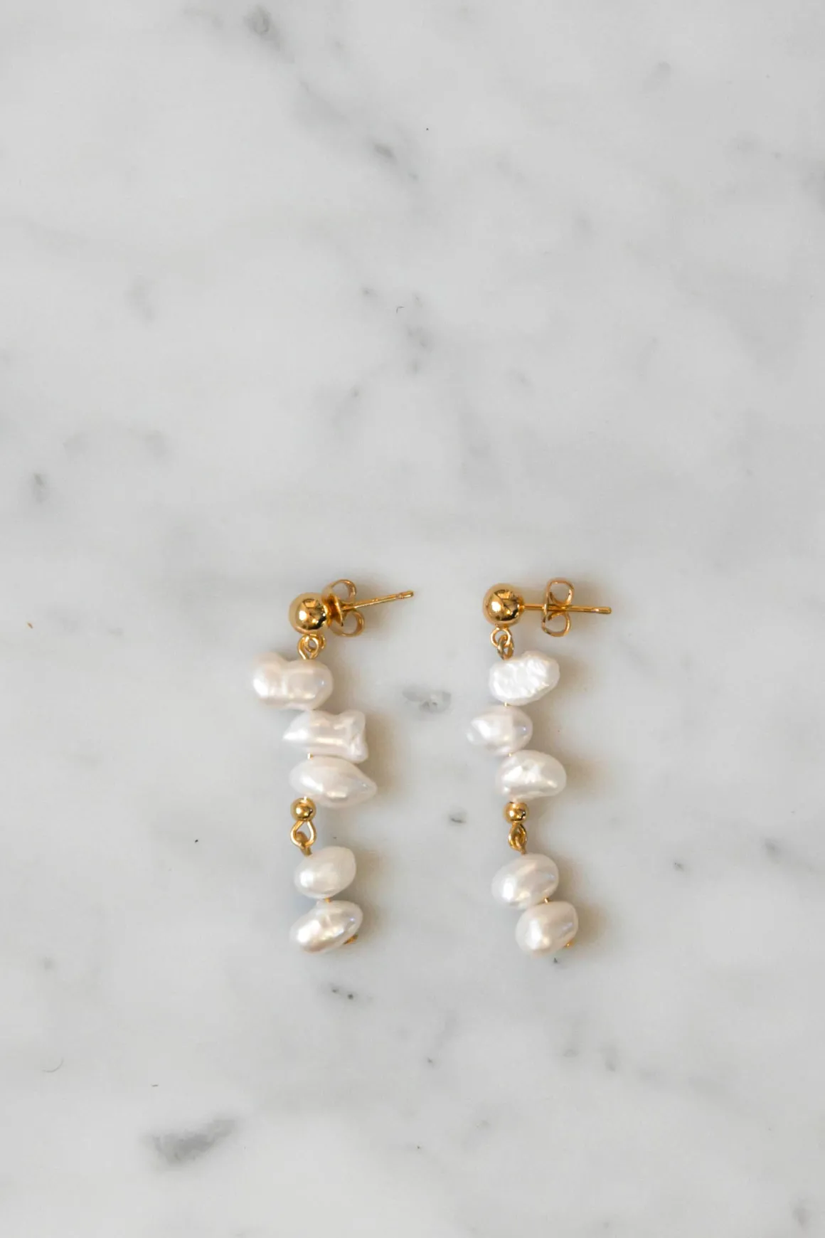 Pearly Drop øredobber fra Anni Lu og Joyride kolleksjonen. Med en overflod av delikate ferskvannsperler, er øredobbene både klassiske, men samtidig lekne. Laget i messing med 18 karat gullbelegg og vakre ferskvannsperler.