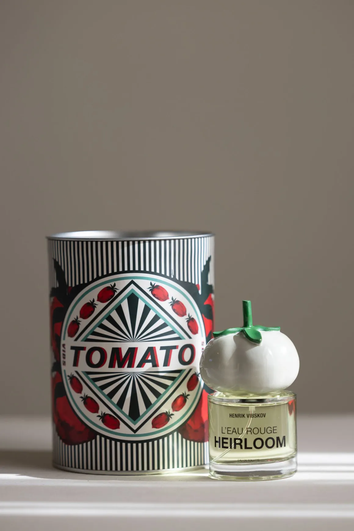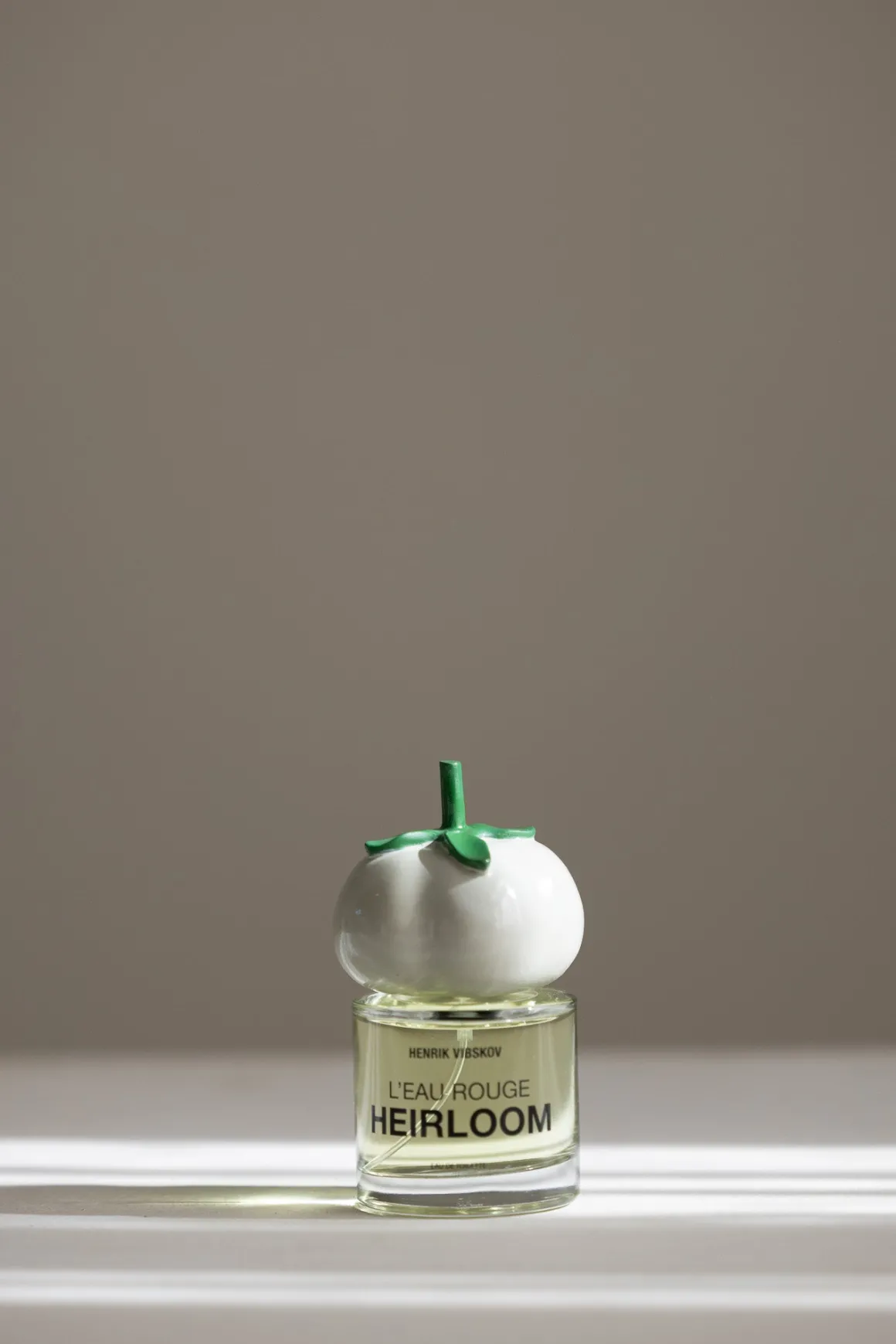 L’eau rouge Heirloom fra Henrik Vibskov er en grønn og livlig duft fra kolleksjonen Long Fingers To Ma Toes, som kombinerer gressaktig friskhet fra basilikum med den intense og grønne duften av tomatblader. Basilikum gir en urtepreget energi, mens tomatbladene tilfører en sval og nesten rå hagefølelse, som sammen skaper et duftbilde av en solfylt kjøkkenhage der grønne blader knuses mellom tærne.