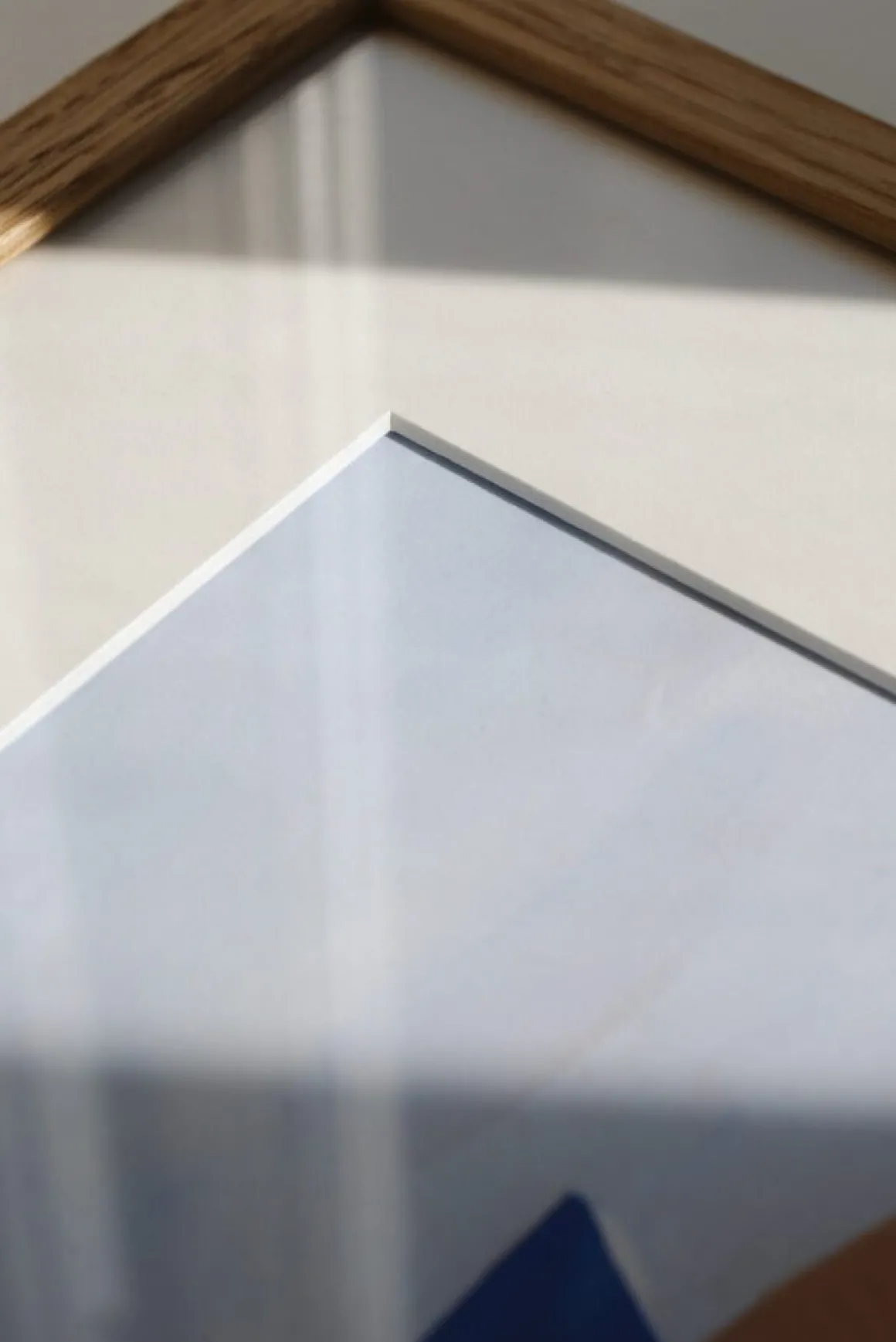 Premium passepartout i hvitt fra The Poster Club er laget av syrefritt FSC-sertifisert papir i museumskvalitet, med matt finish og nøytral fargegjengivelse. Denne varianten passer i rammer på 30 x 40 cm og har vindu som passer til A4-motiver. Med en tykkelse på 1,5 mm skaper passepartouten avstand til glasset, noe som gir motivet et ekstra lag av dybde og fokus. Den presise 45-graders skråkanten og den hvite kjernen gir en profesjonell innramming som fremhever kunsttrykket på en stilren måte.