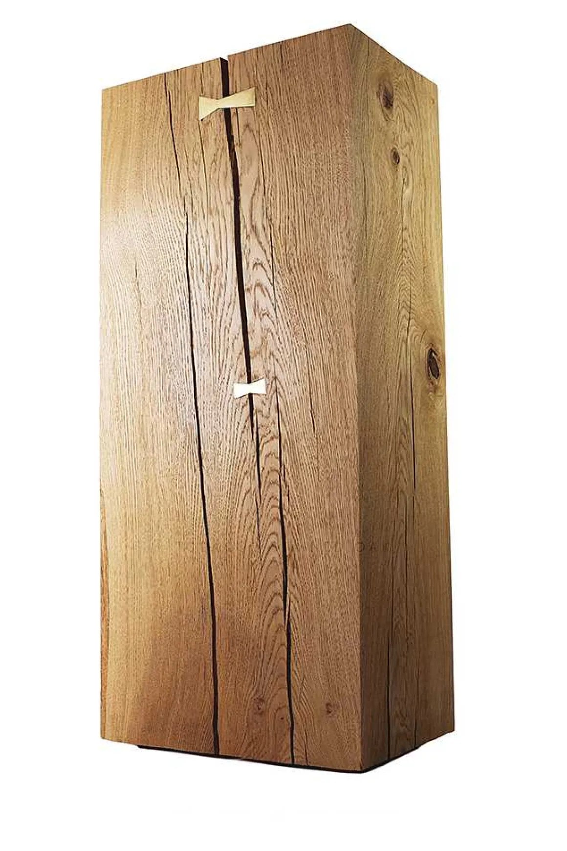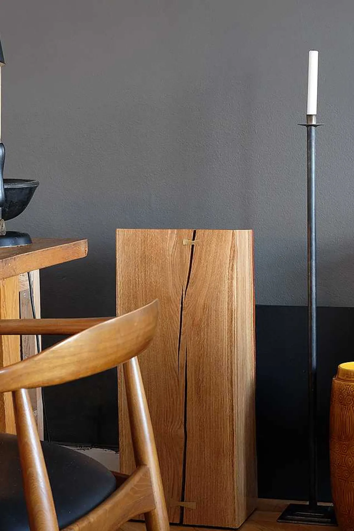 Unik pidestall i eik fra svenske Dry Studios. Alle produktene er håndlaget i eik med messingdetaljer som holder de naturlige sprekkene i treverket samlet. En helt rå pidestall som kan brukes som et avlastningsbord, nattbord eller til utstilling av en favorittvase eller skulptur. Vi elsker de naturlige variasjonene i treverket som tilfører varme og den rustikke følelsen til interiøret. Solid Square Log kommer både i en høy versjon, lav versjon og i mini variant.