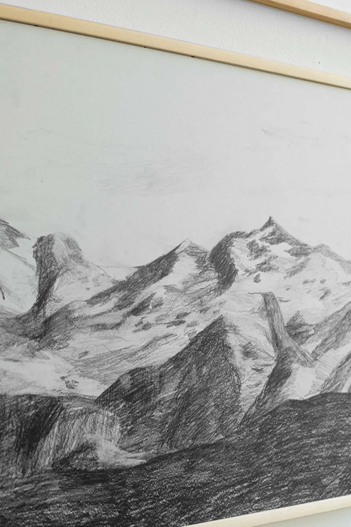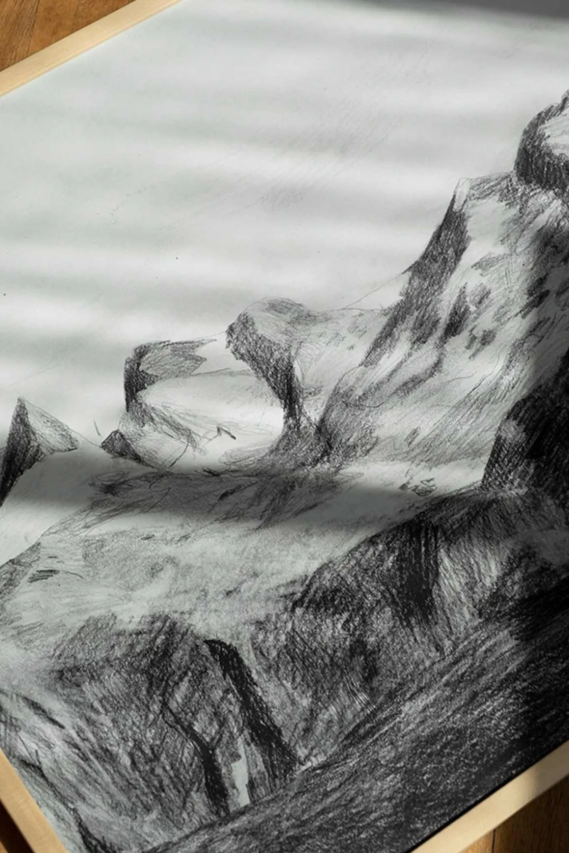 Plakat designet av den norske kunstneren Ina Marie Winther Åshaug for Fine Little Day. B.V.T viser et detaljrikt fjellandskap tegnet med blyant. Intrikat og samtidig enkelt i utrykket. Perfekt på veggen i kombinasjon med andre plakater og motiver.