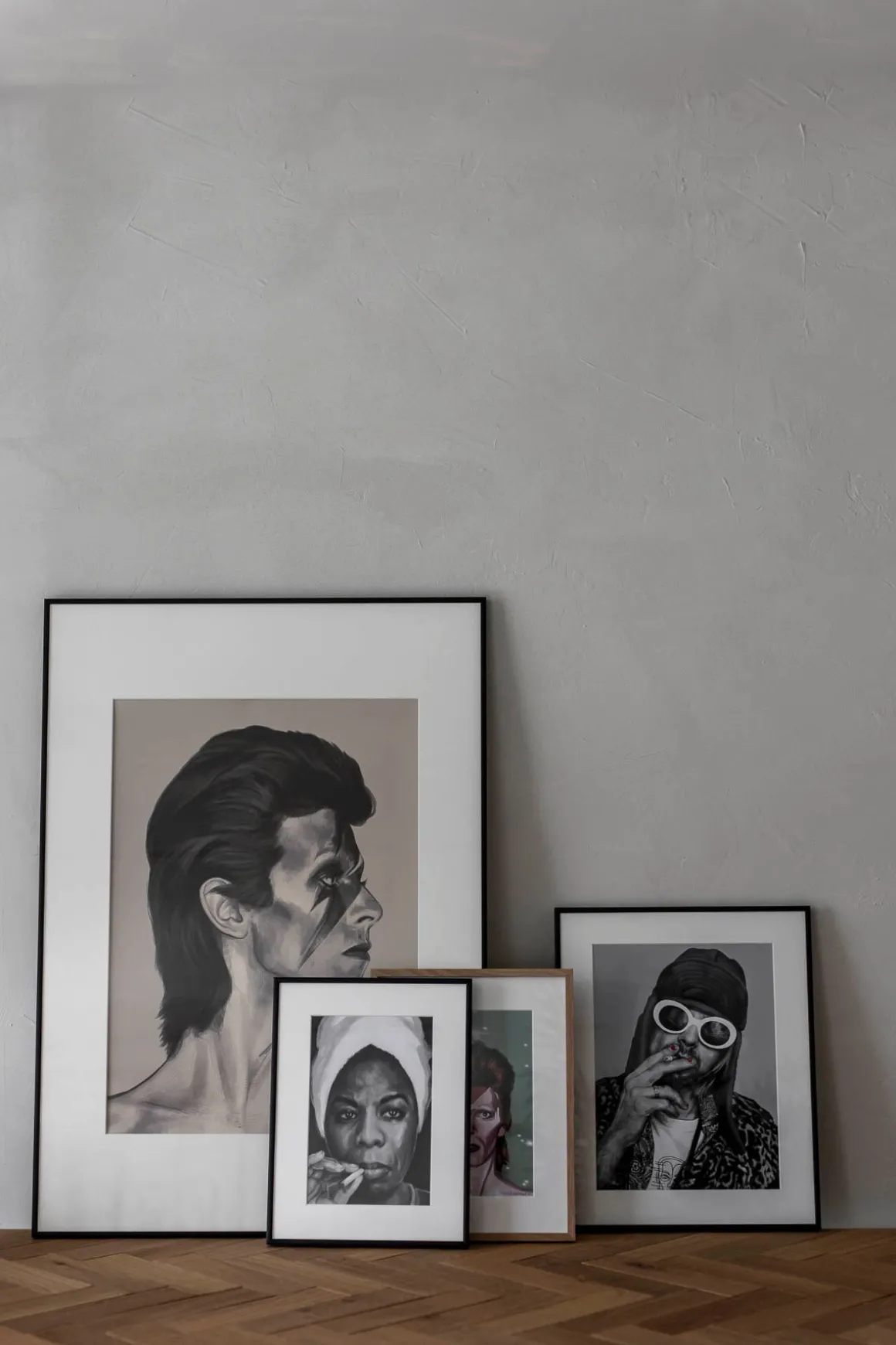Nummerert plakat av David Bowie, signert vår egen Anniken Askeland. Anniken har en helt magisk og uttrykksfull strek og har en forkjærlighet for portretter. Hun inspireres av reiser, musikk, film, familie, mennesker og dyr, og har alltid vært en kreativ sjel med fargestifter på innerlomma. Hun gikk i lære hos kunstneren Per Morten Karlsen og har jobbet for den anerkjente tatovøren Jimmy Duvall, som begge har hatt innflytelse på Annikens kunstneriske uttrykk. Anniken lager digitale print, tegner, maler og blander gjerne ulike teknikker som pasteller, akvarell og blekk. Hun skaper intrikate, realistiske og detaljrike kunstverk med både sjarm, sjel og humor. Plakatene er nummererte og signerte.