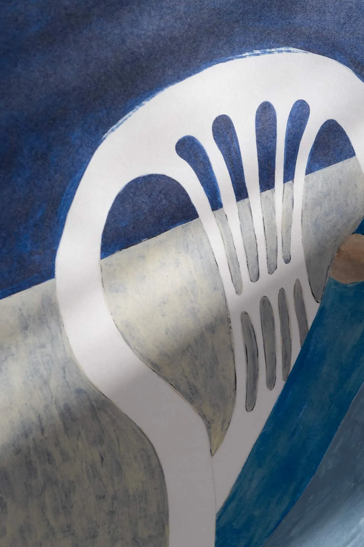 Summer Evening plakat med trykk fra den svenske kunstneren Sofia Lind. Hun er kjent for sin bruk av forskjellige mønstre og lar børstestrøk og de originale materialene være synlig i trykket.