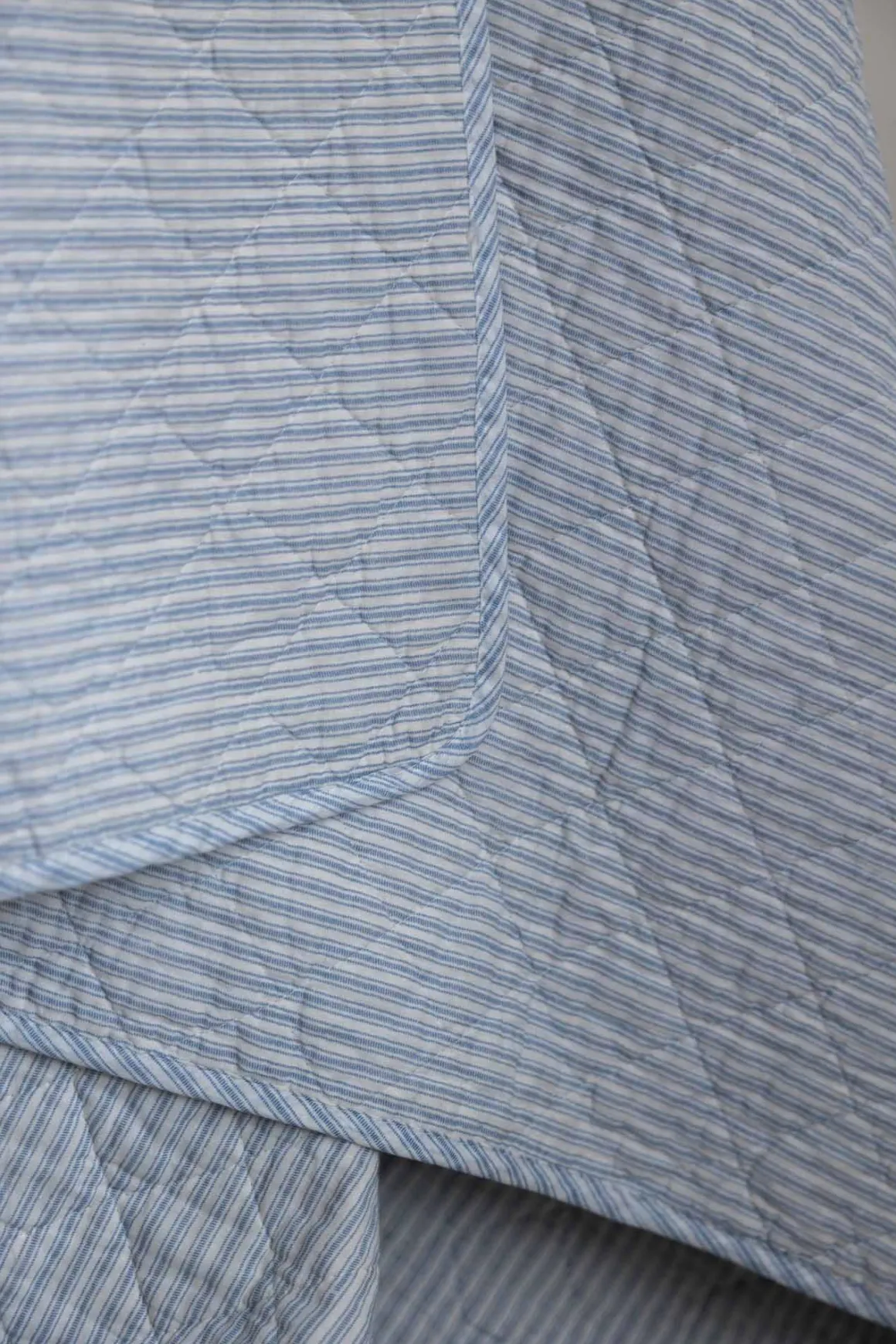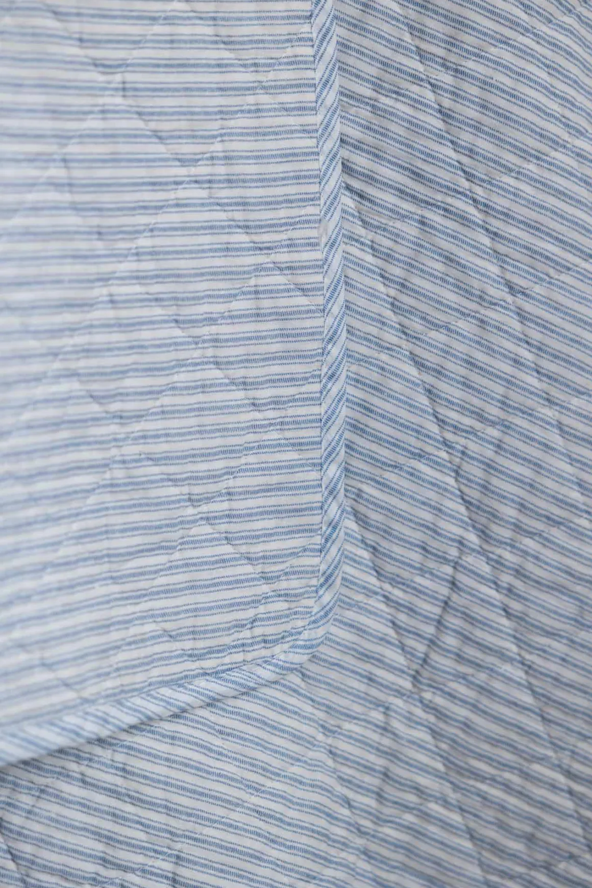 Mykt, quiltet pledd/sengeteppe fra Au Maison. Klassisk med tynne blå og hvite striper. Teppet er laget av resirkulert bomull og passer perfekt som pledd i stuen eller som sengeteppe. Bruk som piknik-pledd eller på uteplassen.