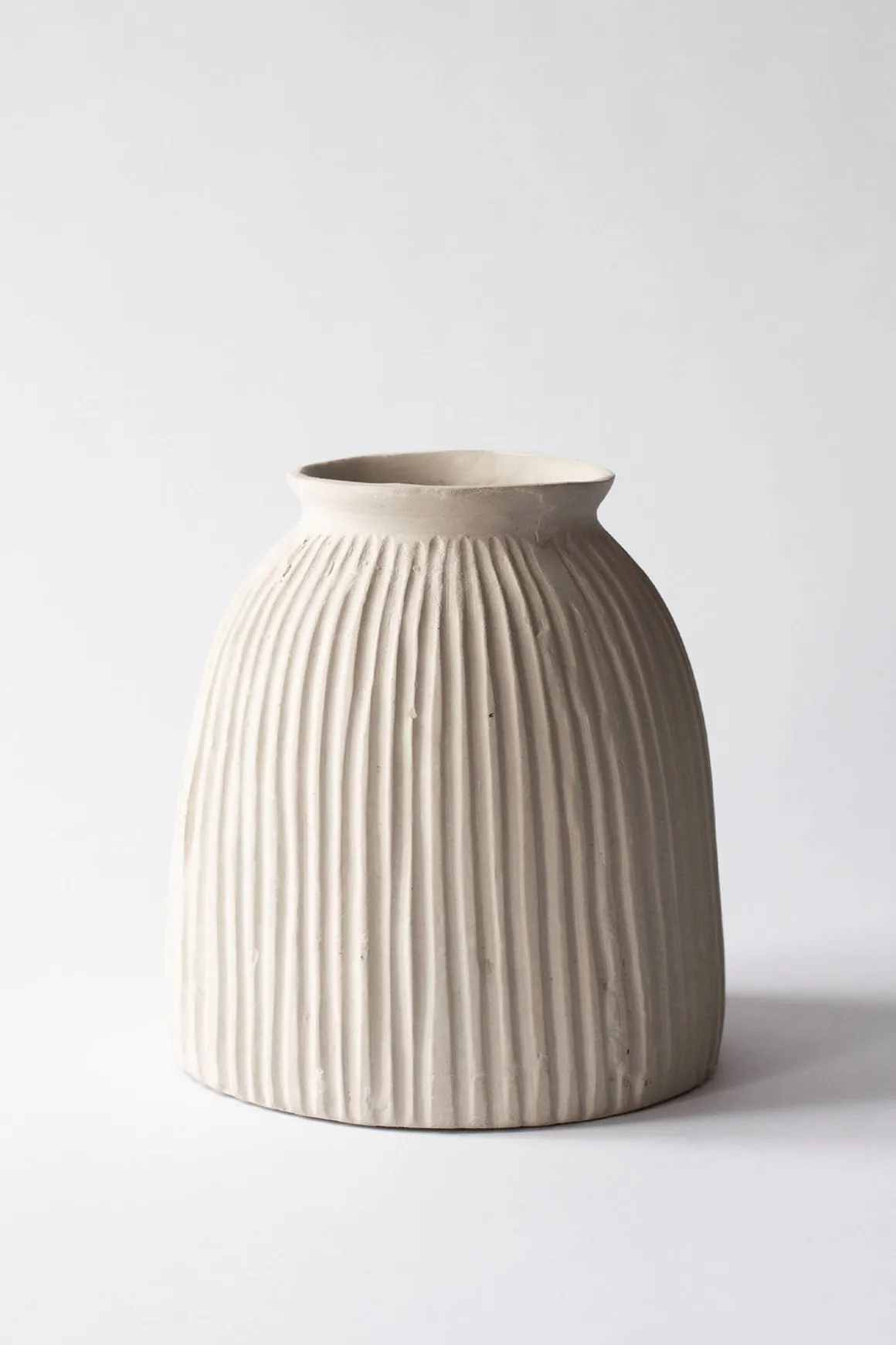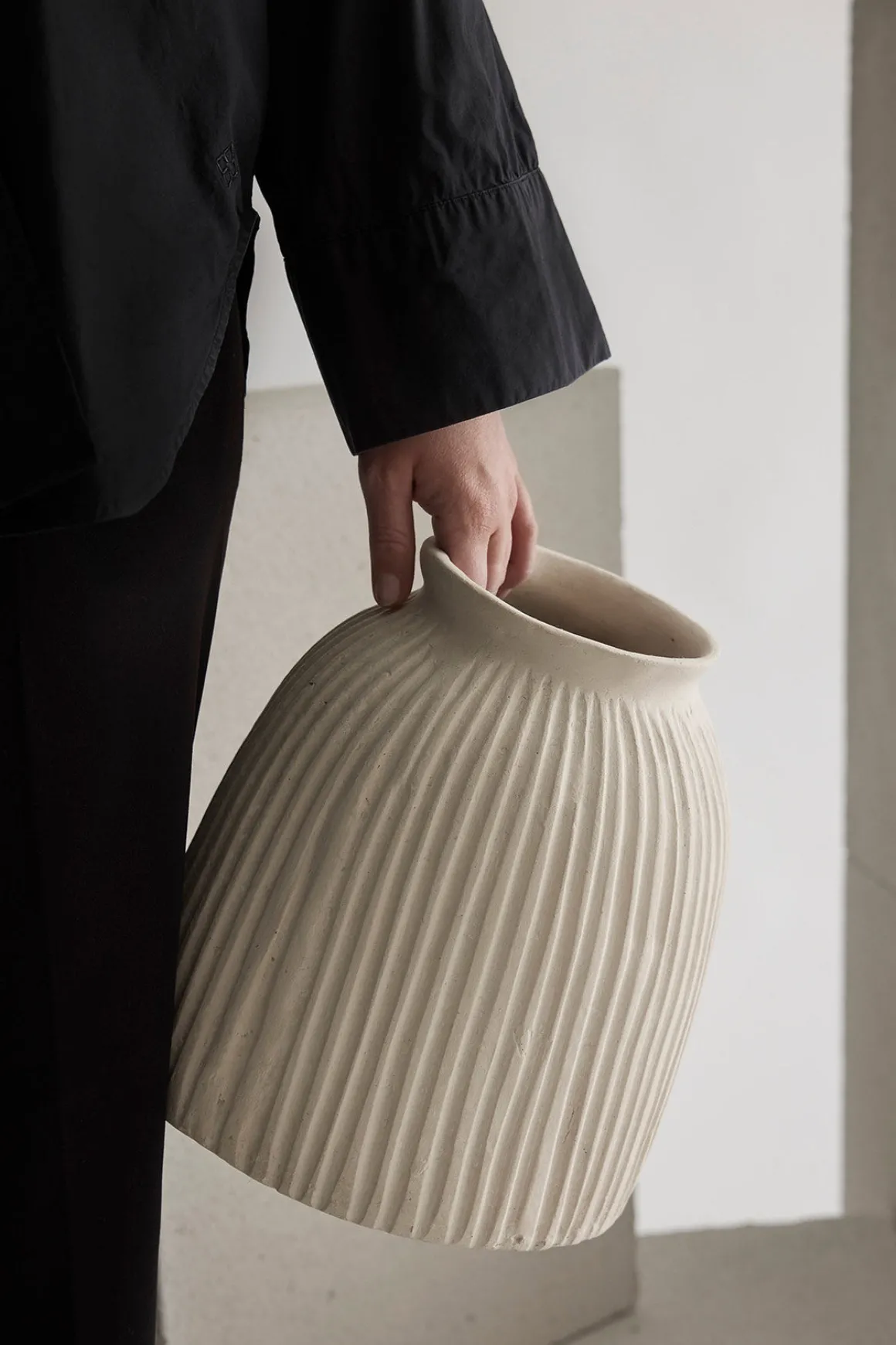Dekorativ potte fra svenske Tell Me More laget i India. Potten er laget av pappmasje med et ribbet mønster, og den rustikke stilen gjør den perfekt som dekorasjon i stue eller kjøkken. Veneto er laget av overskuddsaviser fra lokale forhandlere i en indisk landsby, noe som sikrer at hver potte har en unik form og farge. Den tåler ikke vann, så unngå væskekontakt og fuktige omgivelser. Best brukt som dekorasjon. Den er flott både alene og sammen med andre produkter i Veneto-serien.