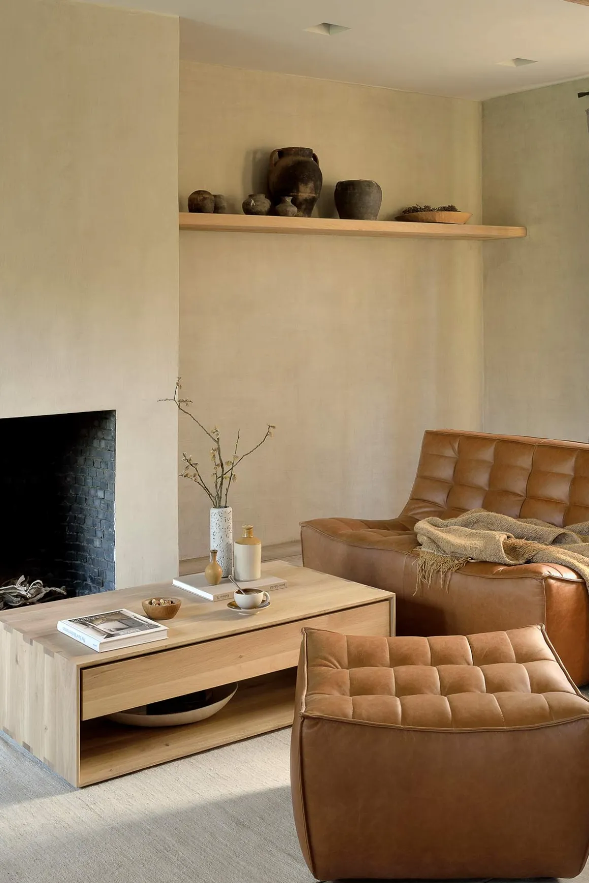 N701-sofaen fra Ethnicraft kombinerer både komfort og funksjon. Ved å kombinere de ulike modulene og størrelsene, kan du skape en sofa som er skreddersydd for ditt hjem og dine behov. Designet av Jacques Deneef, er sofaen tilgjengelig i flere farger og materialer, og gir deg muligheten til å lage en løsning som er helt unik. Puffen er også superfin alene som ekstra sitteplass i stua, på soverommet, eller til å hvile bena på. Puffen er trukket i et vintage-brunt anilin skinn, som enkelt kan matche interiøret og kombineres med eksisterende møbler. Skinnet er gjennomfarget i en vakker cognac-farge og får en fantastisk patina etter bruk som bare blir finere med årene.