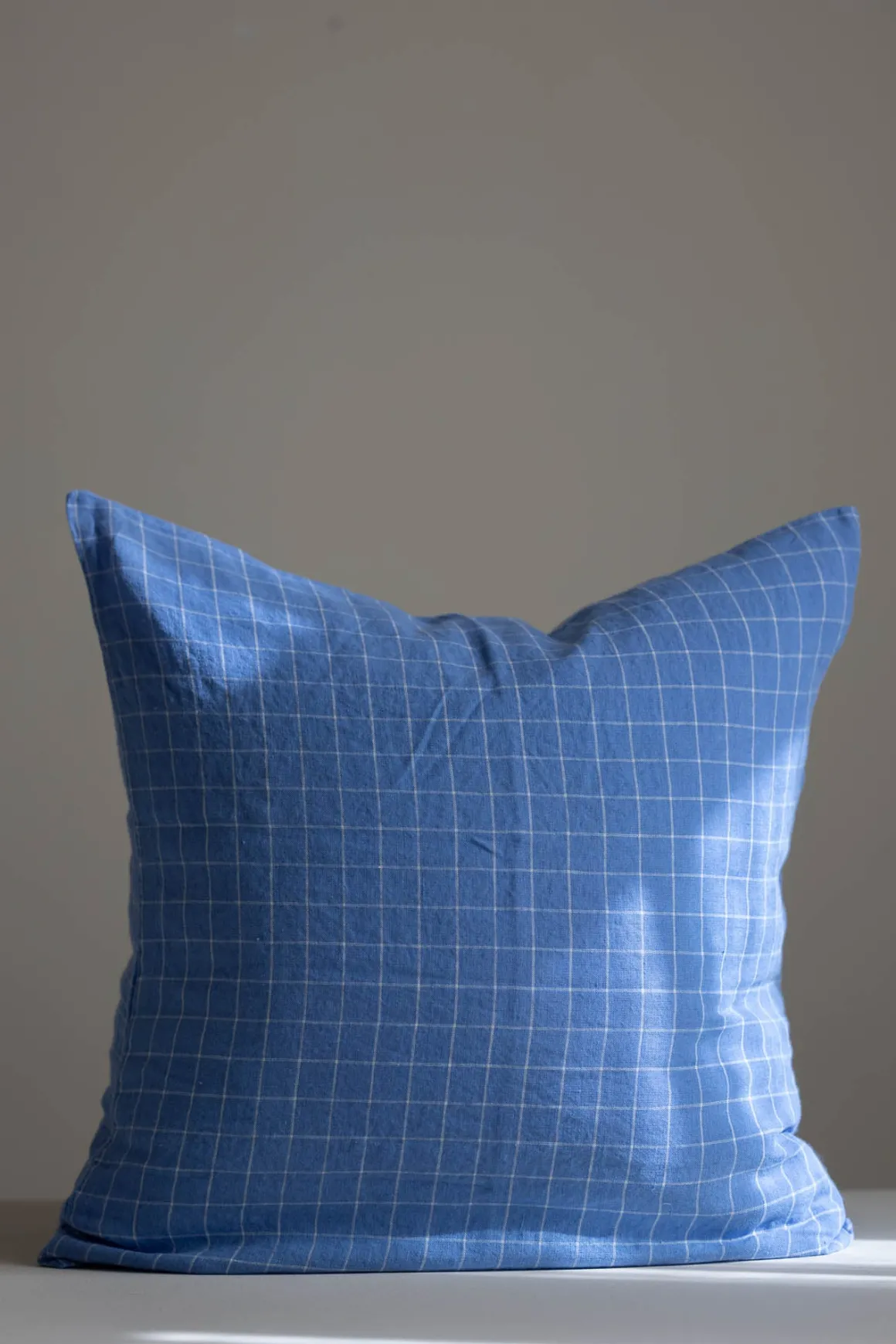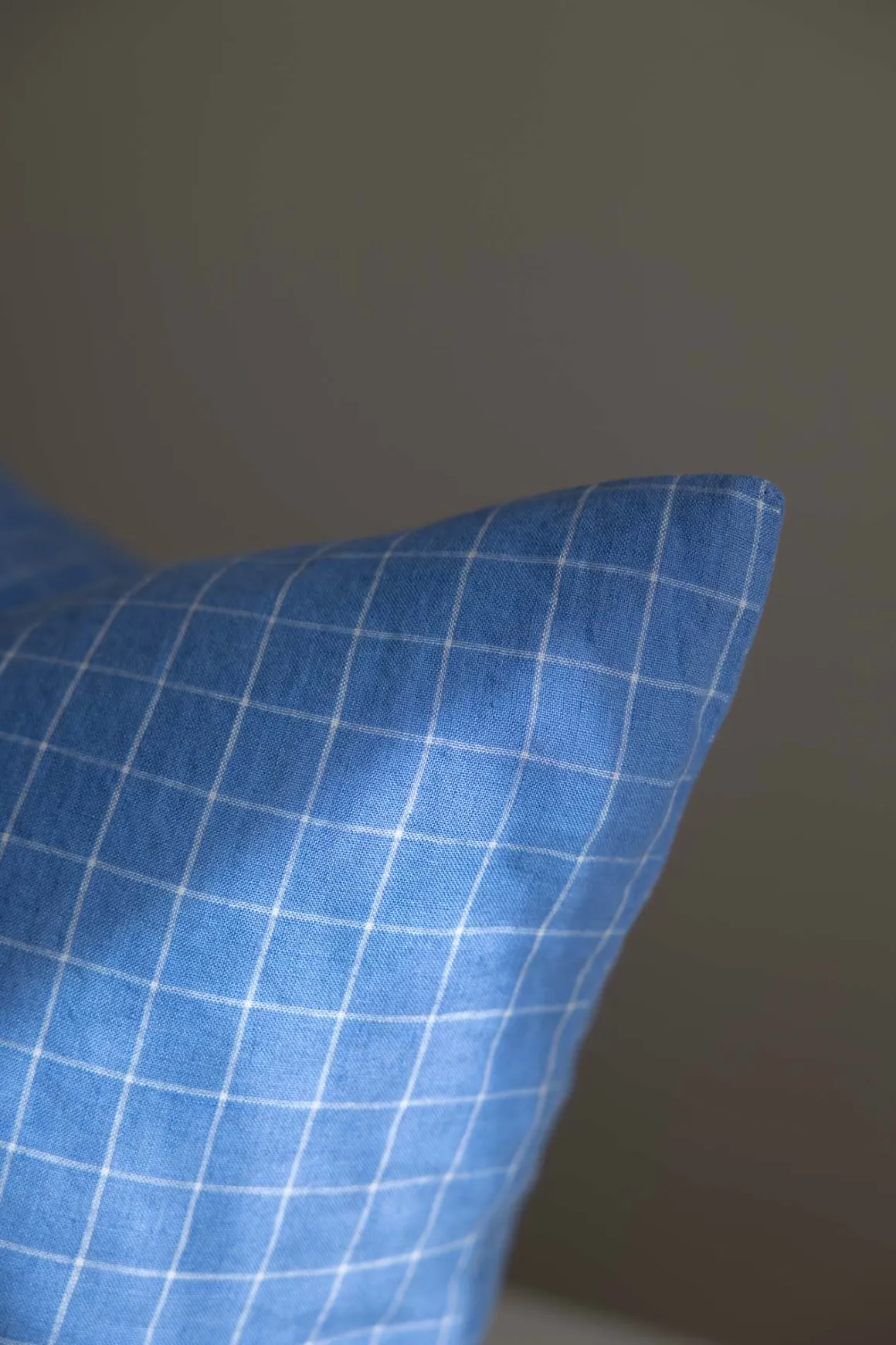 Putetrekk fra Linge Particulier laget av 100% vasket lin i en klar blåfarge med smale hvite ruter, et friskt og tidløst innslag i både stue og soverom. Det franske merket er kjent for sitt fokus på høykvalitets lin produsert i Europa, og det plaggvaskede stoffet gir en myk og avslappet følelse. Trekket trenger ikke å strykes etter vask, og den lett rynkete strukturen tilfører bare mer karakter. Passer like godt hjemme som på hytta.