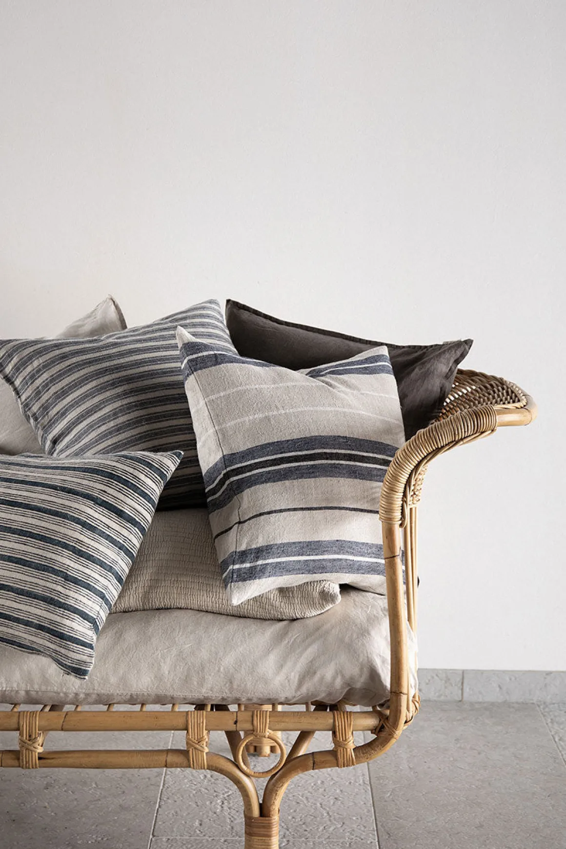 Putetrekk fra svenske Tell Me More i 100% håndvevd lin. Putetrekket har en vakker struktur med striper i blått, beige og hvitt. Putetrekket passer både i sofaen og på sengen, og kan kombineres med andre dekorative puter. Fargetonene er levende, med naturlige variasjoner og nyanser i stoffet. Håndvevingen gjør hvert putetrekk unikt, så tekstur, farge og form kan avvike noe fra bildene. Putetrekket har en diskret glidelås nederst og selges uten innerpute. En koselig detalj for å skape en innbydende atmosfære!