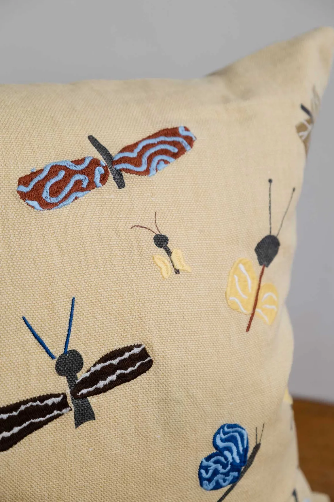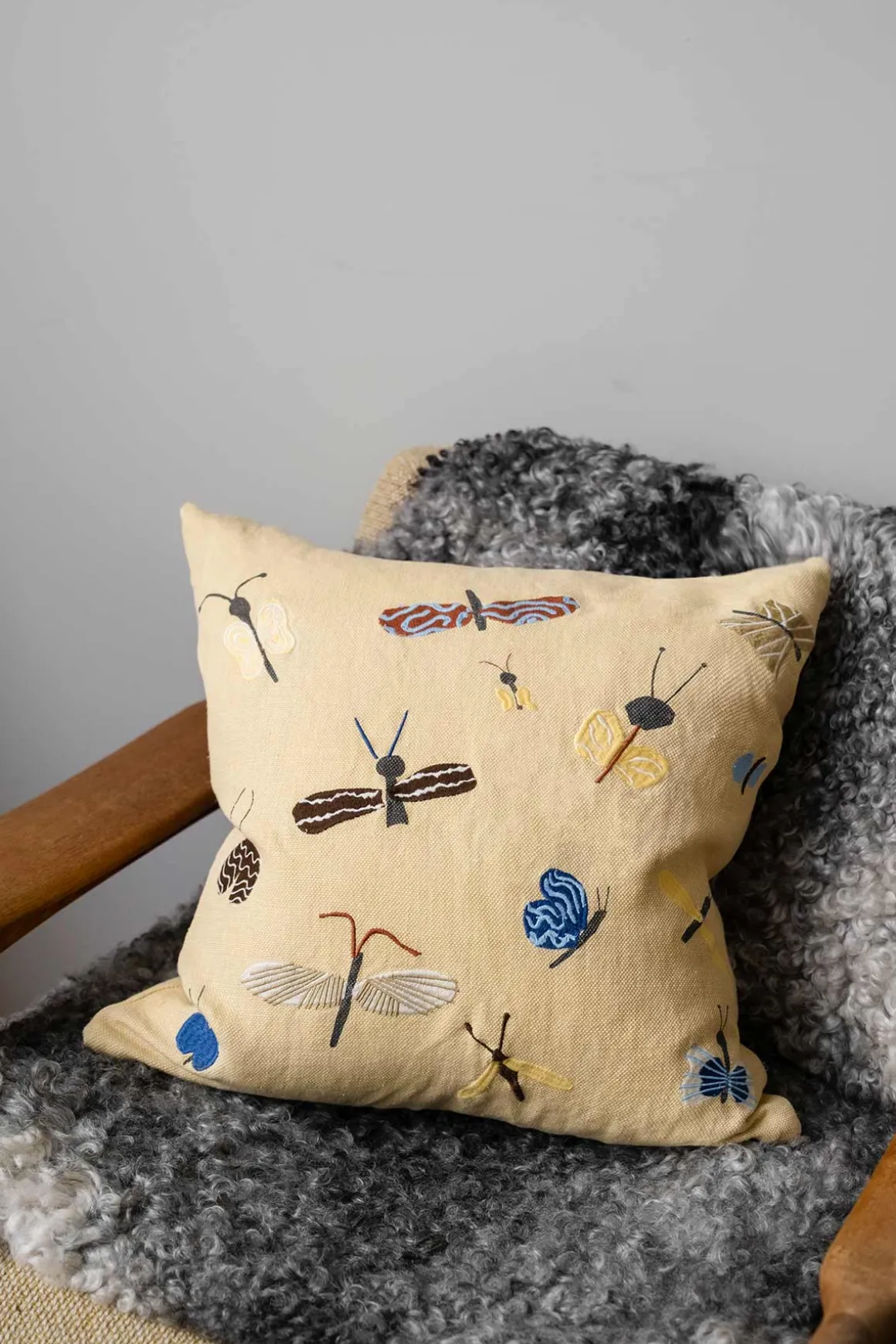 Slända putetrekk designet av Amanda Hoffner for Fine Little Day. Et brodert putetrekk med et sjarmerende eksentrisk insektsdesign og vil dermed ta naturen med inn i sofaen din. Kunstneren Amanda Hoffner (f. 1989) arbeider først og fremst med collagebaserte bilder. Hun maler, klipper og bygger bildeverdener. Kun motiv på ene siden, lukkes med glidelås i bunn. Perfekt som et personlig innslag til ditt interiør. Innerpute følger ikke med. Passer til innerpute som er 50×50 cm.
