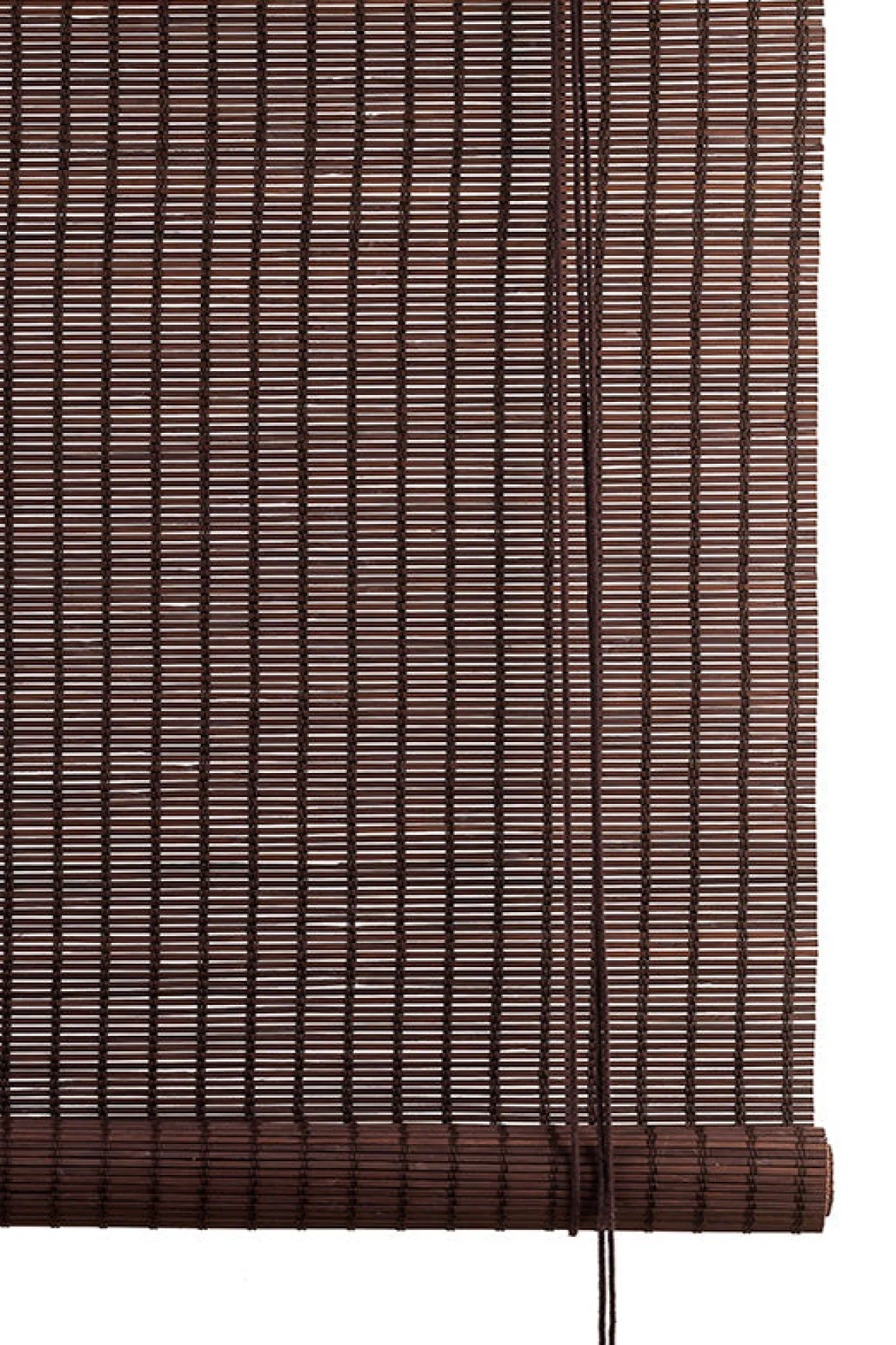 Bambus rullegardin fra danske Color u0026amp; Co i en nydelig mørkebrun, beiset farge. Gardinen består av ca. 3,5 mm brede bambuspinner som er vevd sammen av mørkebrun tråd. En superfin og enkel kvalitetsgardin som skaper lun og koselig stemning i hjemmet.