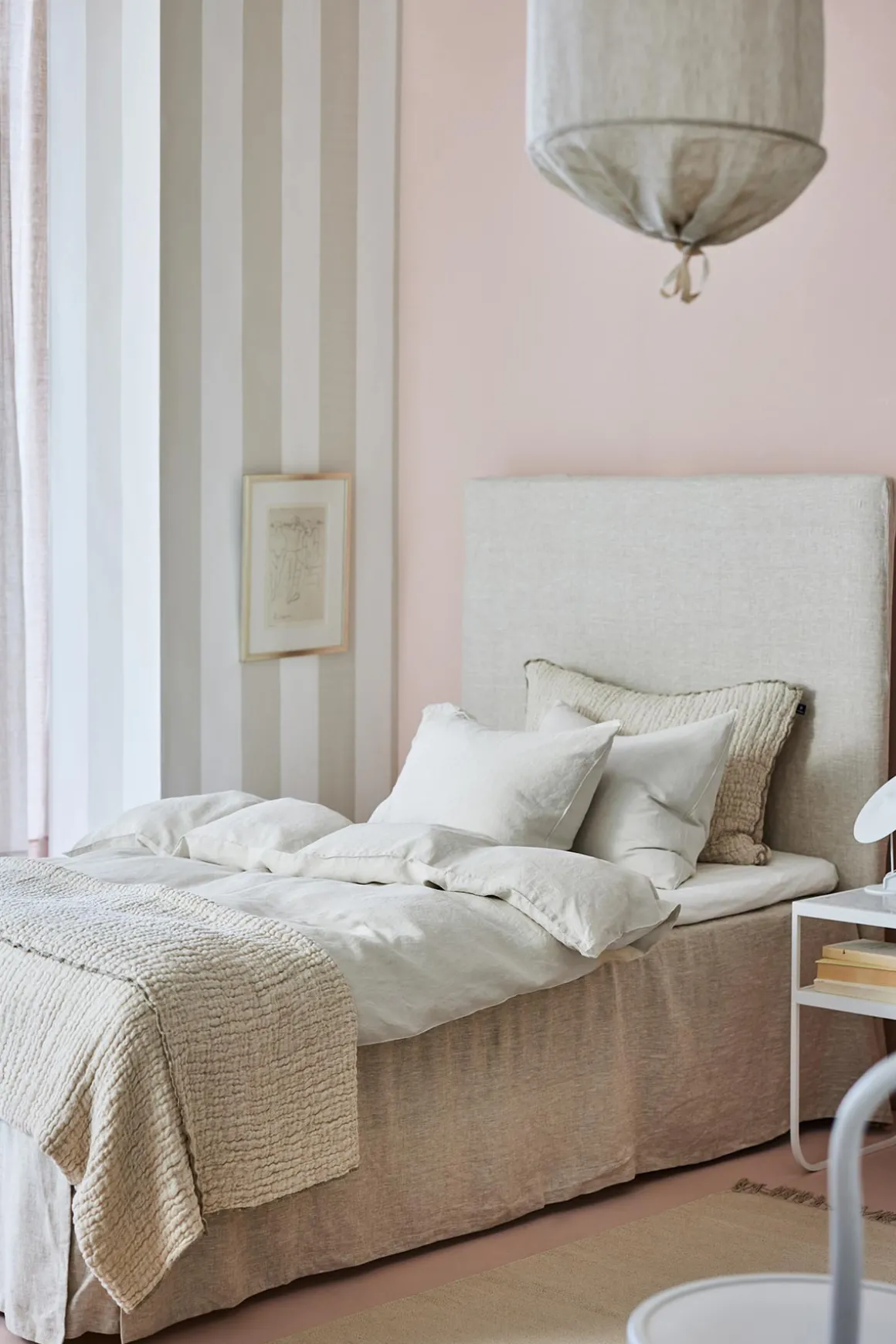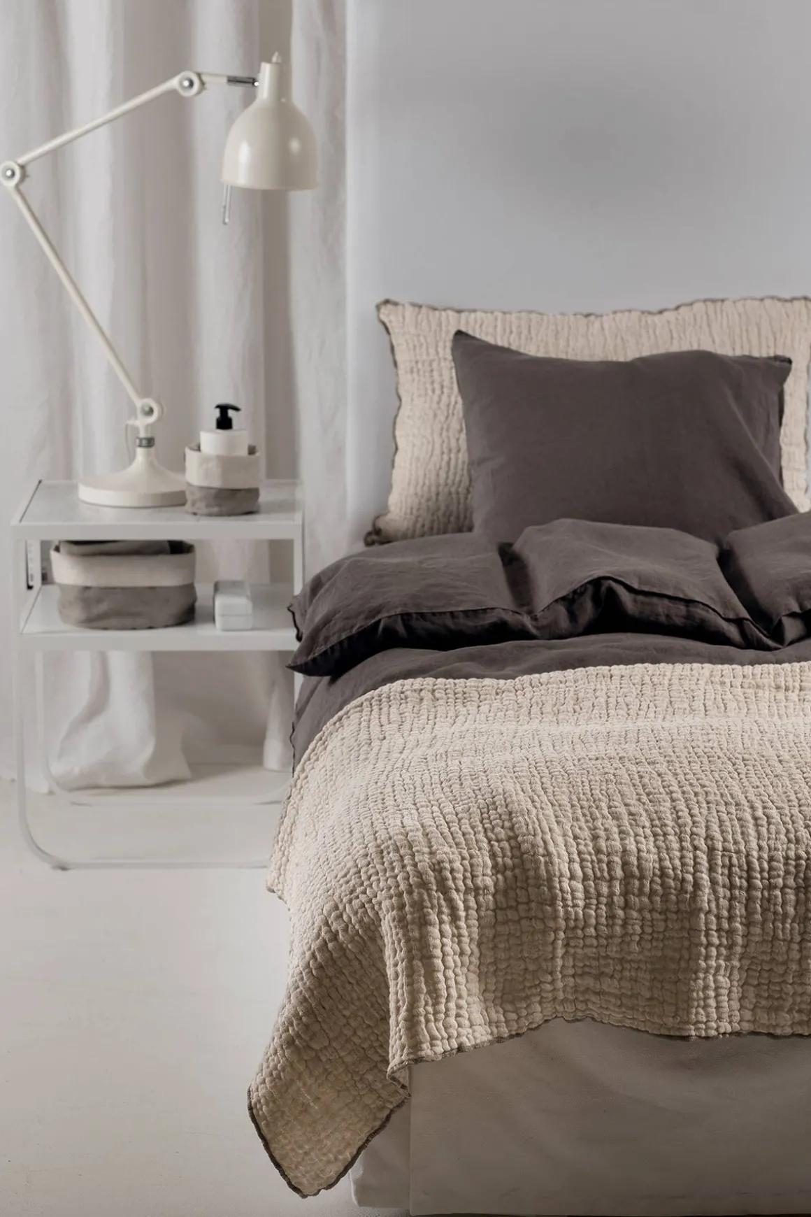 Pauline sengeteppe i fargen Oatmeal fra Himla er laget av en dobbeltvevd bomulls-og linblanding med en myk, krøllet overflate. Overlocksøm i en kontrastfarge langs kantene skaper et mer spennende uttrykk. Sengeteppet har ulik for- og bakside og er også vendbart for de som ønsker det. Veldig pent og superherlig i sengen på kjølige netter.