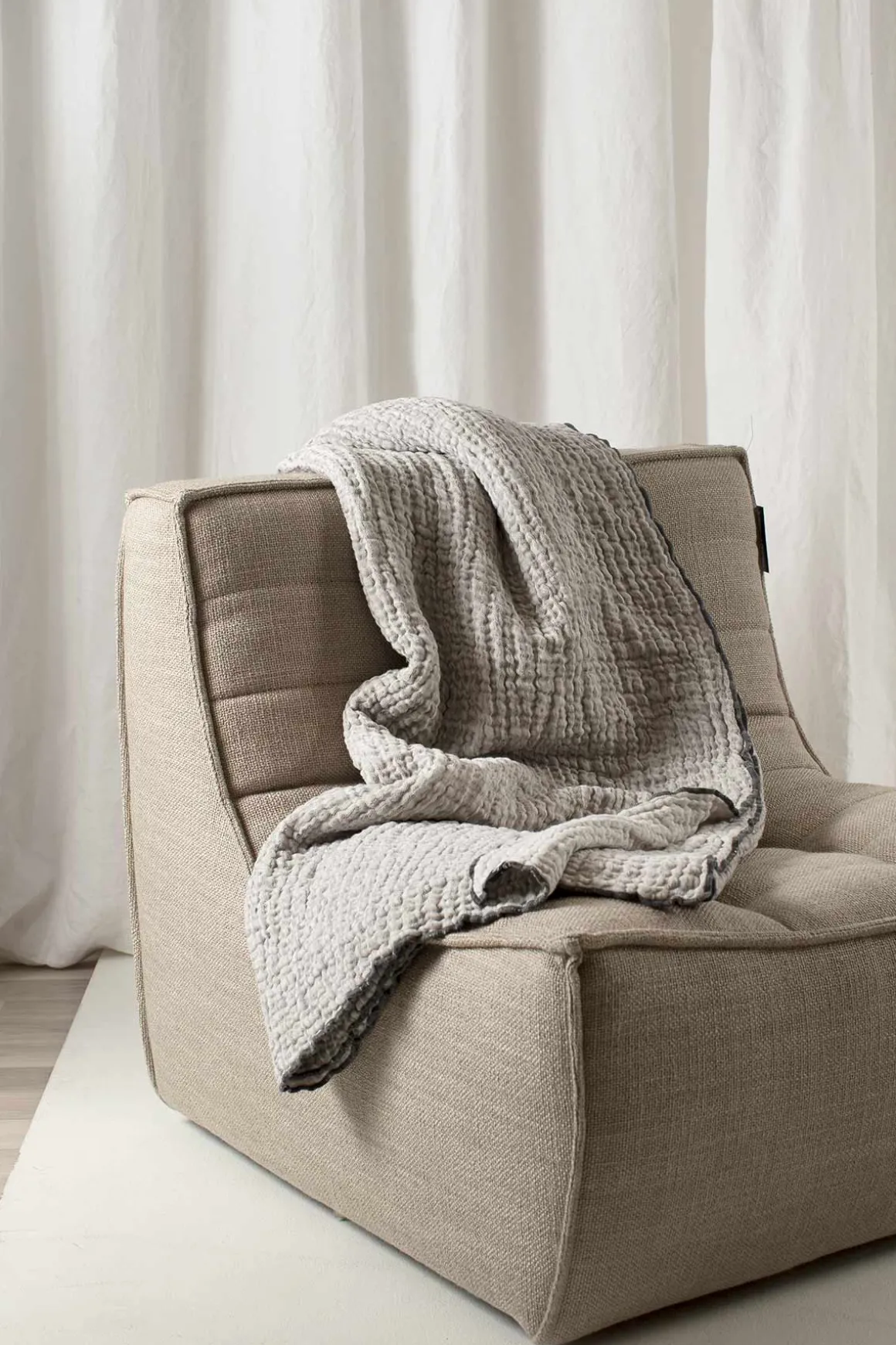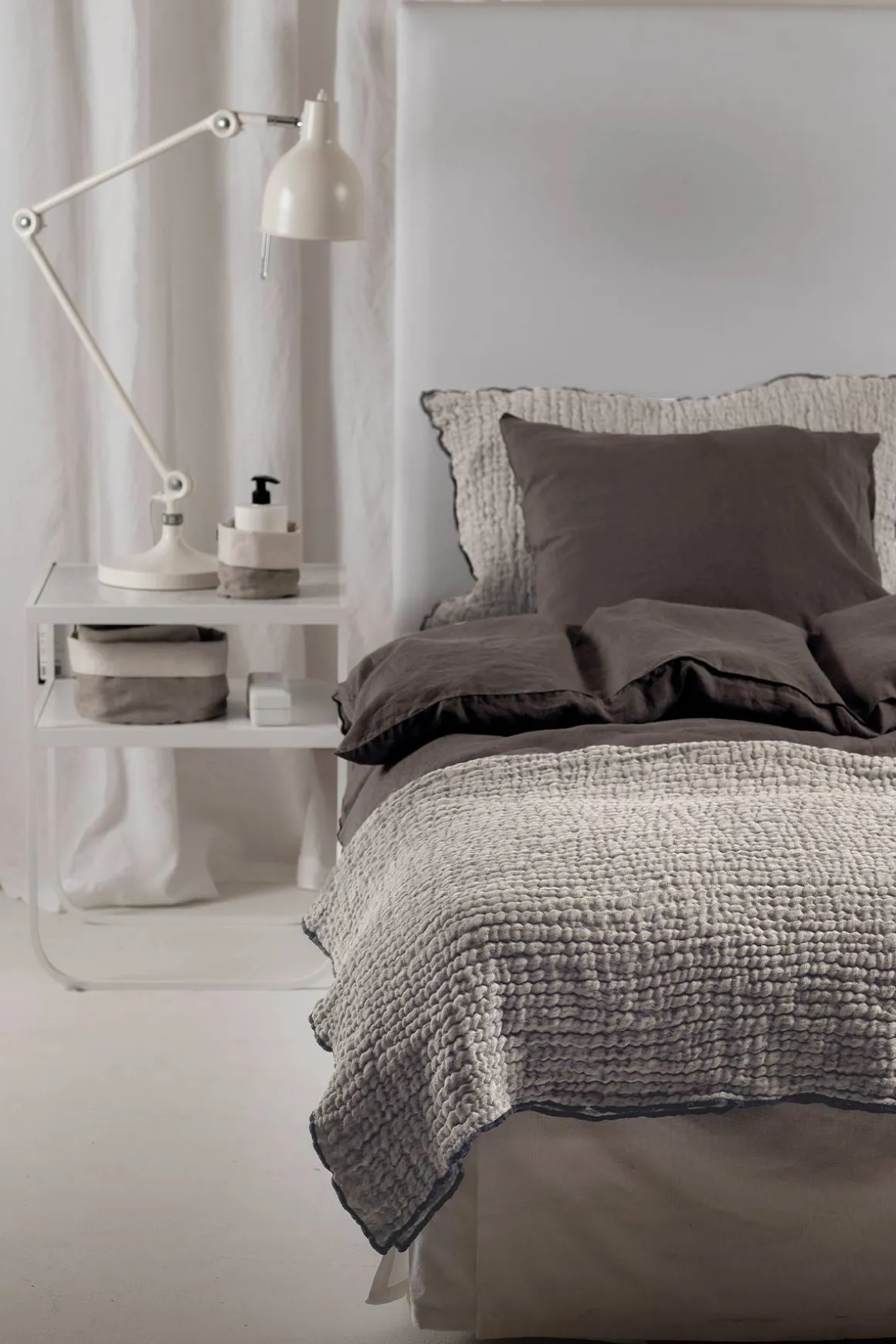 Pauline sengeteppe i fargen Shadow fra Himla er laget av en dobbeltvevd bomulls-og linblanding med en myk, krøllet overflate. Overlocksøm i en kontrastfarge langs kantene skaper et mer spennende uttrykk. Sengeteppet har ulik for- og bakside og er også vendbart for de som ønsker det. Veldig pent og superherlig i sengen på kjølige netter.