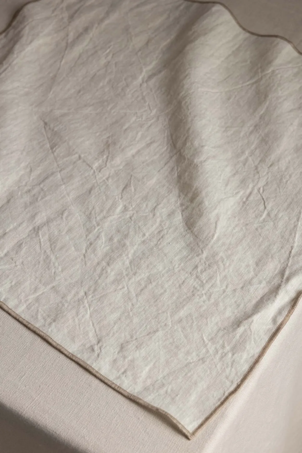 Håndfarget serviett i 100% lin fra danske Tameko, med en vakker kontrastsøm som tilfører en ekstra detalj. Linet er steinvasket for en myk tekstur og en naturlig, avslappet krøll som gir servietten et sjarmerende og uformelt uttrykk- helt uten behov for stryking! Når middagen er over, er det bare å kaste den i maskinen. Merrow er en pen linserviett som løfter borddekkingen og skaper en hyggelig atmosfære. Selges pr stk.