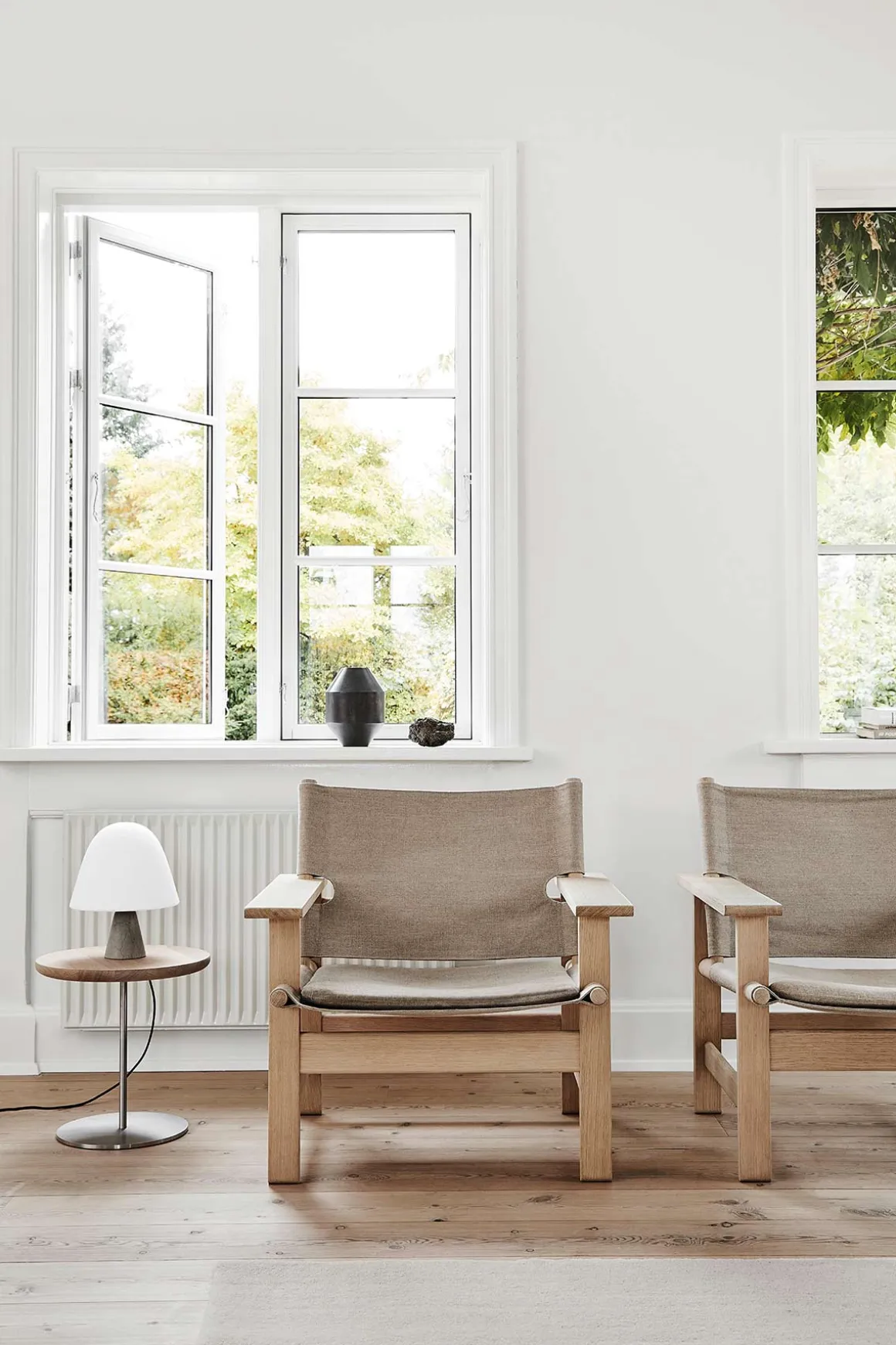 Pal sidebord fra Fredericia, designet av den Milano-baserte, japanske designeren Keiji Takeuchi. Akkurat som navnet antyder, er Pal der når du trenger det. Et lett bord som enkelt kan flyttes rundt der det trengs. Bordplaten er laget i heltre eik og ligner et serveringsbrett balanserende på en slank base i rustfritt, børstet stål. Massivt tre og gjennomarbeidet stål er rike materialer som vil få en vakker patina over tid, og dessuten blander de seg sømløst med andre materialer og fargevalg i praktisk talt ethvert interiør. Ulik finish, bordplatestørrelse og muligheten til å velge en foretrukket høyde gjør Pal til et allsidig design du kan tilpasse deg og dine behov. Pal er tilgjengelig med bordplate i oljet valnøtt, eik eller sortlakkert eik, og understell i børstet stål eller sortlakkert stål. Den kommer også i tre høyder og to bredder på bordplaten.
