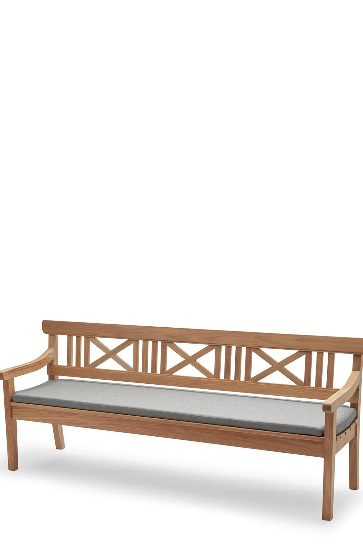 Sittepute til Drachmann-benk fra Skagerak. Tåler vind og vær, og gir ekstra komfort slik at du kan bli sittende å spise, snakke og kose deg i timesvis. Puten er polstret i eksklusivt Agora Panama-stoff som er et øko-tex-sertifisert og farget akrylstoff. Akrylfiberen skaper et syntetisk, men bomullslignende stoff med funksjoner i verdensklasse for utendørs bruk, noe som gjør det både svært farge-og lysfast, vann-og smussavvisende, muggbestandig og er samtidig fri for skadelige stoffer. Innerputen er laget av Quickdry Outdoor Foam; et skum med en åpen cellestruktur som lar vann passere gjennom slik at den tørker ekstremt fort samtidig som den holder formen og holder seg fast år etter år.