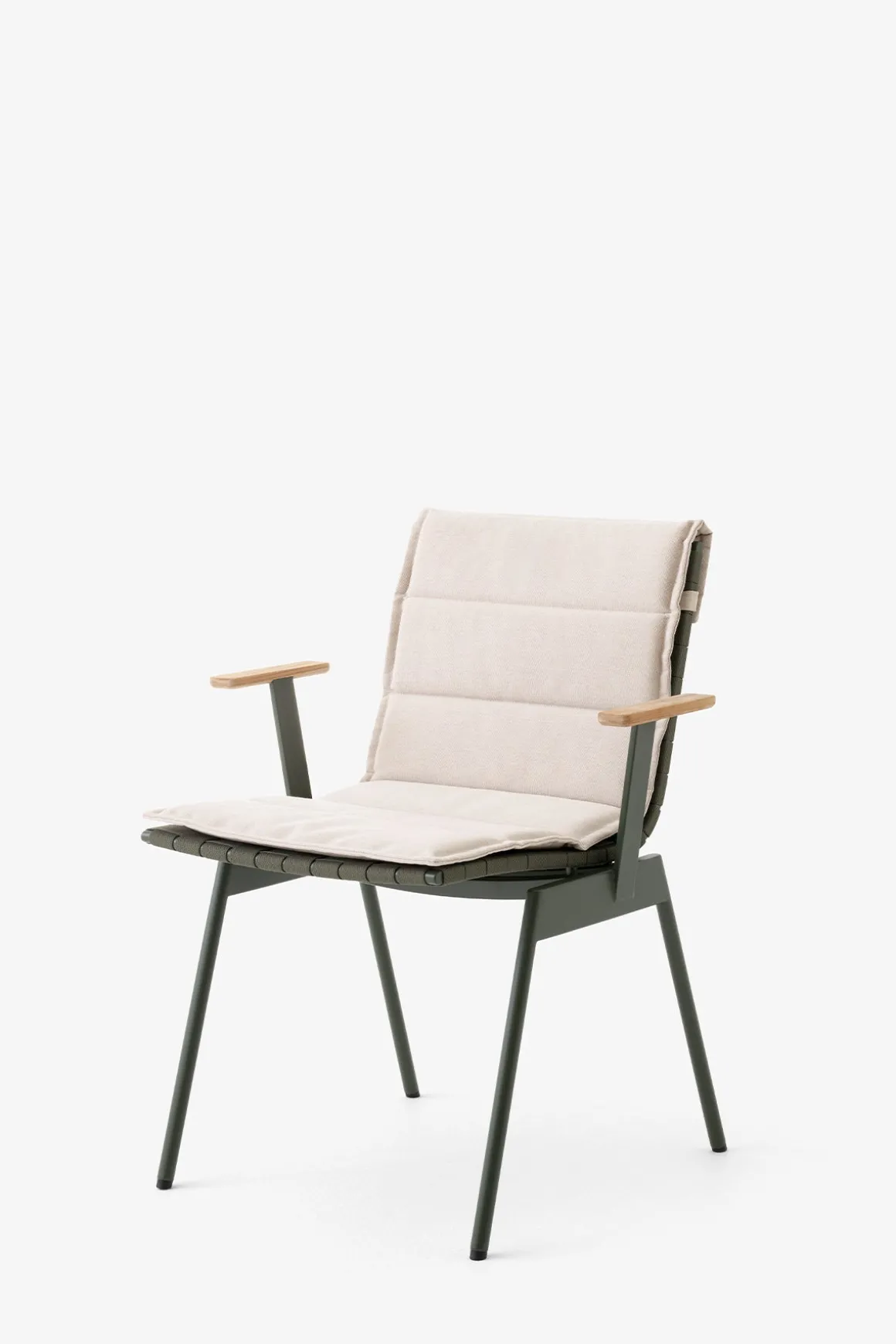 Sittepute med ryggstøtte til Ville utestoler fra danske u0026amp;Tradition, designet av den norske designduoen Andersen u0026amp; Voll. Sitteputen er laget av vannavvisende og flekksikkert lerret som er laget av 50% resirkulert akryl, 47% akryl, og 3% polyester. Puten inneholder et hurtigtørkende skum og vatt som gjør den svært behagelig å sitte på – en perfekt match med utestolene fra samme serie.