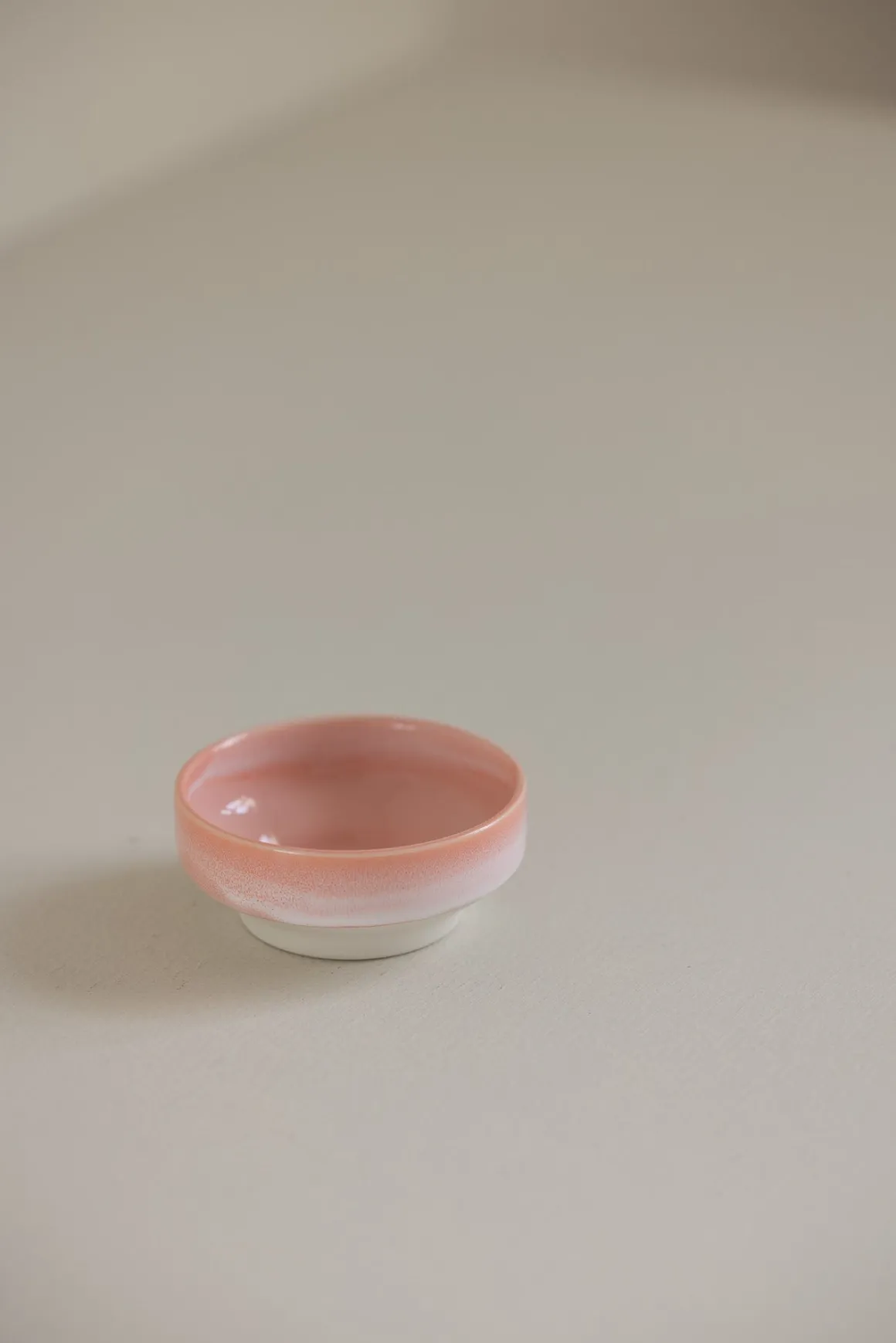 Dip Dish er en liten, håndlaget skål med en bred, flat fot som gir stabilitet på flate underlag. Hver skål er unik, med små variasjoner i form og glasur. Den passer perfekt til soyasaus, aioli, oliven og nøtter, eller som oppbevaring for smykker.