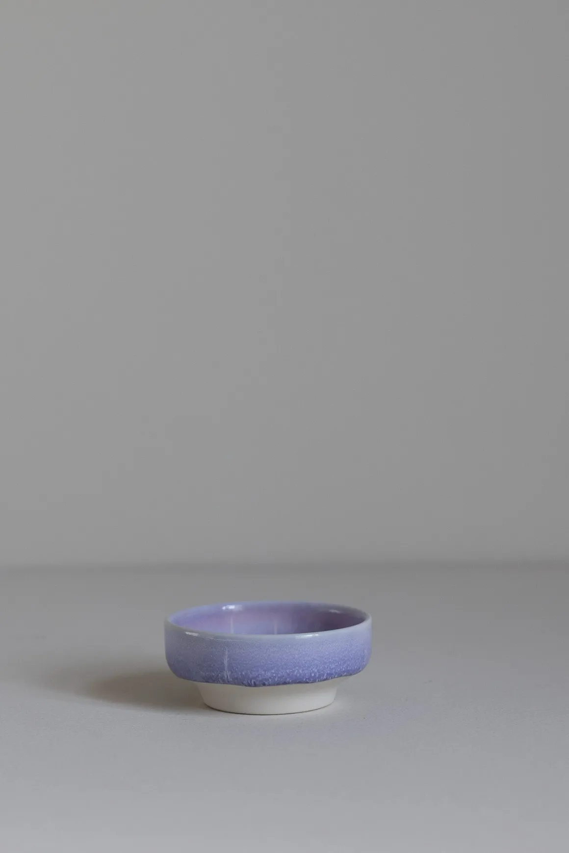 Dip Dish er en liten, håndlaget skål med en bred, flat fot som gir stabilitet på flate underlag. Hver skål er unik, med små variasjoner i form og glasur. Den passer perfekt til soyasaus, aioli, oliven og nøtter, eller som oppbevaring for smykker.