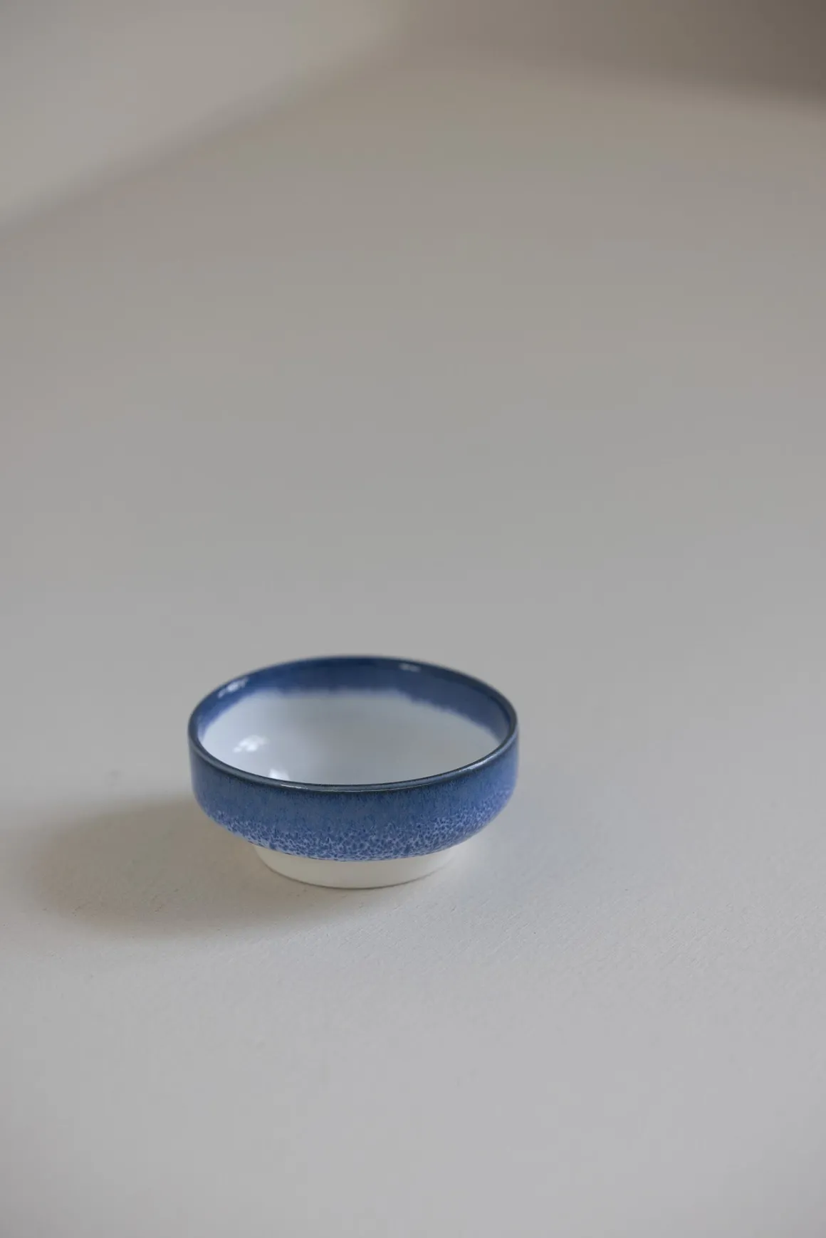 Dip Dish er en liten, håndlaget skål med en bred, flat fot som gir stabilitet på flate underlag. Hver skål er unik, med små variasjoner i form og glasur. Den passer perfekt til soyasaus, aioli, oliven og nøtter, eller som oppbevaring for smykker.