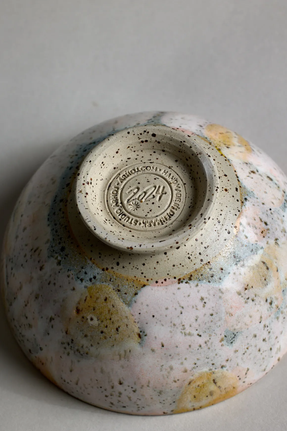 Sun Bowl fra Studio Arhoj – et håndlaget designobjekt som kombinerer funksjon og estetikk på en vakker måte. Skålen er laget i steintøy og kommer i en rekke unike fargekombinasjoner, som gjør hver Sun Bowl til et iøynefallende tilskudd på bordet. Bruk den til frokostblandingen, snacks eller som en dekorativ detalj, alene eller sammen med andre skåler fra samme serie.