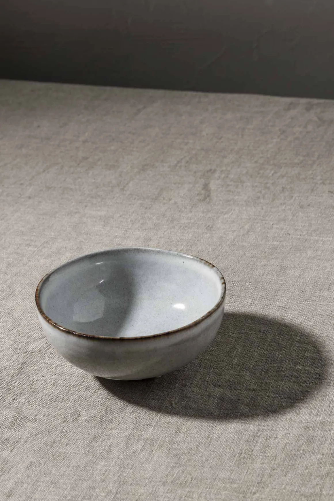 Liten blåfarget skål i glasert steingods fra Tell Me More. Skålen er sterk, holdbar og den fine glasuren gir hver og en et unikt utseende som vil friske opp borddekkingen din. Veldig fin alene, eller bland med annet servise i forskjellige teksturer og farger for et spennende og innbydende utseende. Siden hver skål er unik kan fargen og utseende variere litt fra bildet. Fin til serveringer av desserter, snacks og oliven.