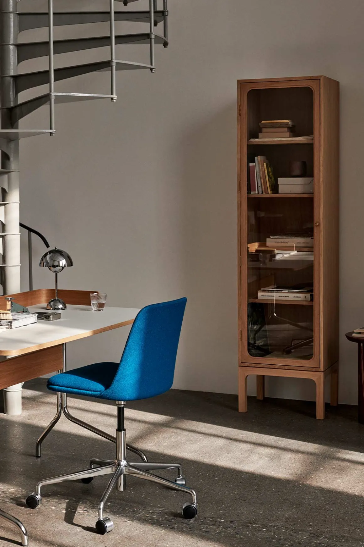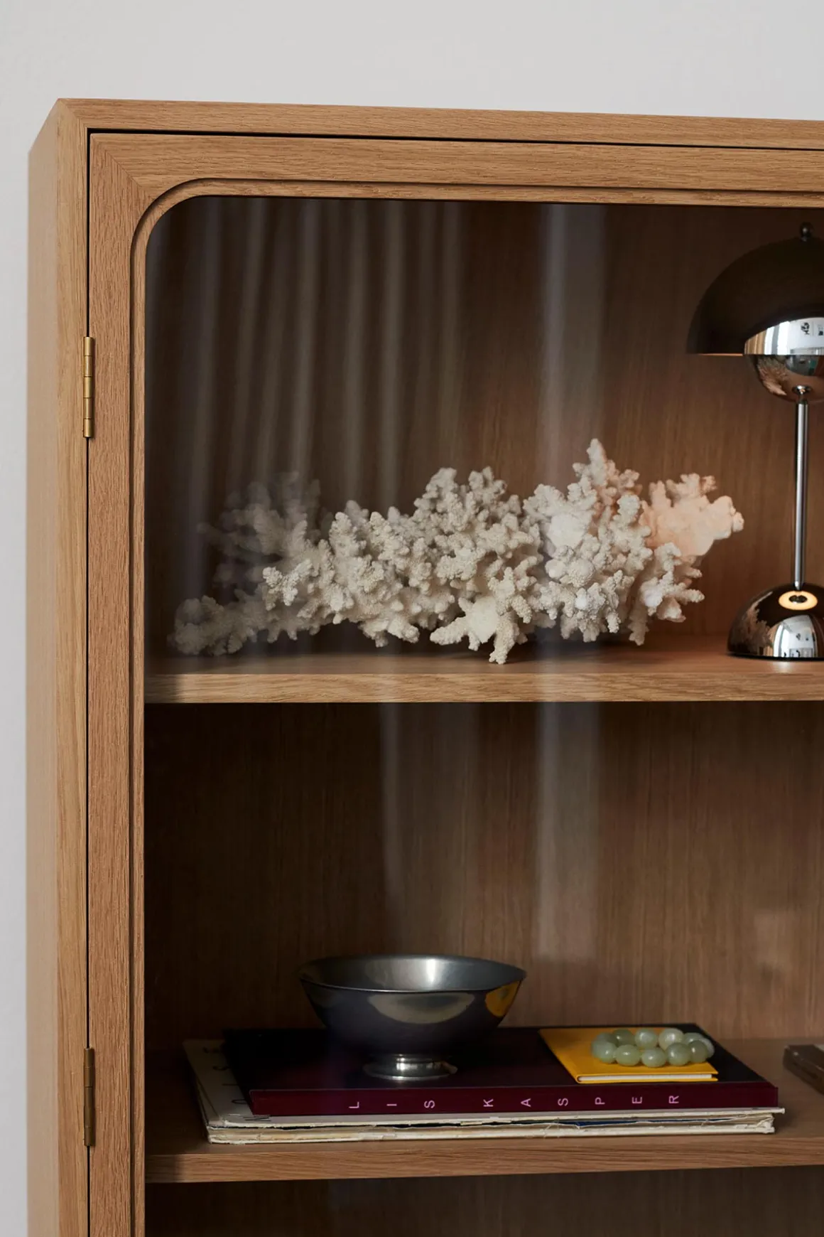 Trace Single er et vakkert vitrineskap som forener en moderne silhuett med et klassisk uttrykk, designet av Space Copenhagen for u0026amp;Tradition. Designstudioet valgte skapets navn for å gjenspeile konseptet med å samle små, sentimentale objekter fra livene våre – og sporene de etterlater seg. Skapet og hyllene er laget av MDF-plater, skåret til og dekket med eikefiner, deretter behandlet med vannbasert klar lakk. Dørene er laget av frest massiv eik og herdet glass. Trace passer sømløst inn i skandinaviske hjem, og er et tidløst utstillingsvindu til dine kjæreste eiendeler. Trace finnes også i en dobbel variant og i mørkbeiset eik.