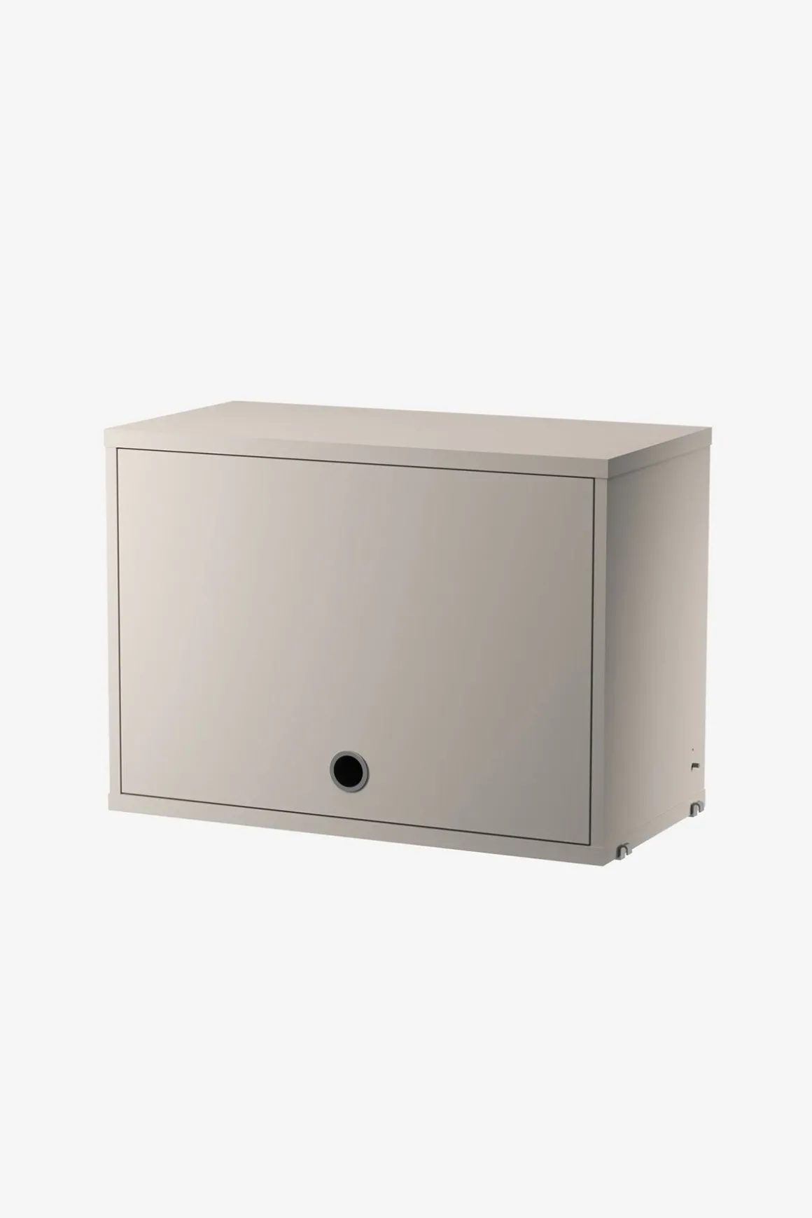 Flip Door-skapet selges som en enkeltdel du praktisk kan kombinere i ditt String® System. Flip Door-skapet er tilgjengelig i B: 58/78 cm x D: 30 cm x H: 42 cm. Skapet passer sammen med alle 30 cm dype gavler fra String® System. Skapet har én justerbar innerhylle og de innvendige målene er B: 55 cm x D: 28,5 cm x H: 38 cm. Visuelt er det fint å bryte med et større element i stringhyllen, samtidig som det er superpraktisk til oppbevaring og lagring. Plasser ting på toppen for ekstra utnyttelse. Skapet leveres umontert og med opphengsbeslag i pakken. Selges pr stk.