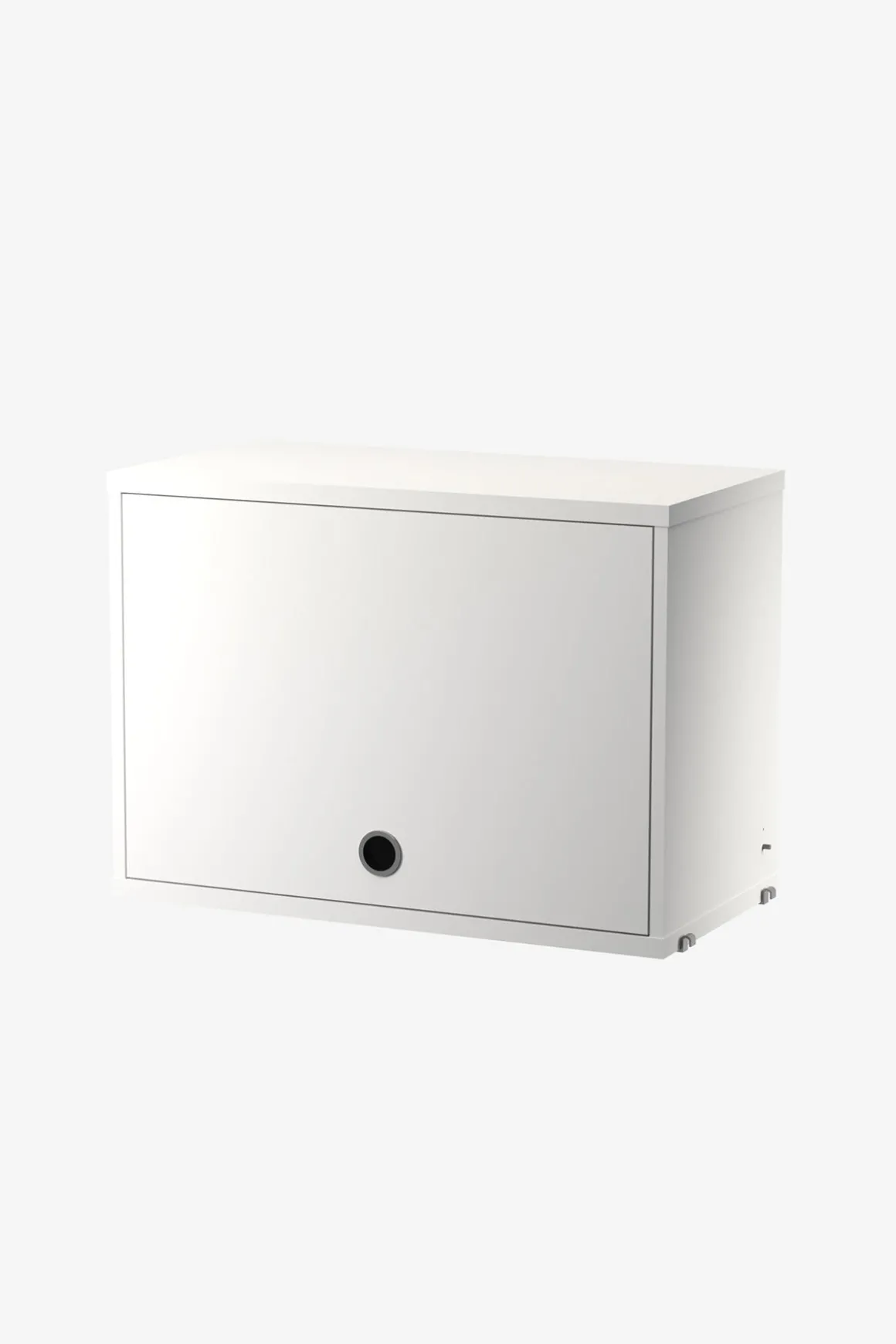 Flip Door-skapet selges som en enkeltdel du praktisk kan kombinere i ditt String® System. Flip Door-skapet er tilgjengelig i B: 58/78 cm x D: 30 cm x H: 42 cm. Skapet passer sammen med alle 30 cm dype gavler fra String® System. Skapet har én justerbar innerhylle og de innvendige målene er B: 55 cm x D: 28,5 cm x H: 38 cm. Visuelt er det fint å bryte med et større element i stringhyllen, samtidig som det er superpraktisk til oppbevaring og lagring. Plasser ting på toppen for ekstra utnyttelse. Skapet leveres umontert og med opphengsbeslag i pakken. Selges pr stk.