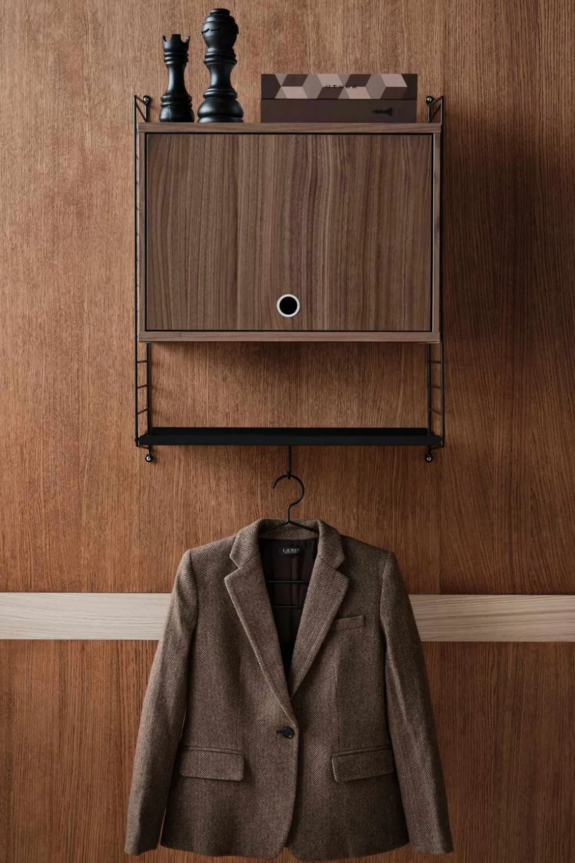 Flip Door-skapet selges som en enkeltdel du praktisk kan kombinere i ditt String® System. Flip Door-skapet er tilgjengelig i B: 58/78 cm x D: 30 cm x H: 42 cm. Skapet passer sammen med alle 30 cm dype gavler fra String® System. Skapet har én justerbar innerhylle og de innvendige målene er B: 55 cm x D: 28,5 cm x H: 38 cm. Visuelt er det fint å bryte med et større element i stringhyllen, samtidig som det er superpraktisk til oppbevaring og lagring. Plasser ting på toppen for ekstra utnyttelse. Skapet leveres umontert og med opphengsbeslag i pakken. Selges pr stk.