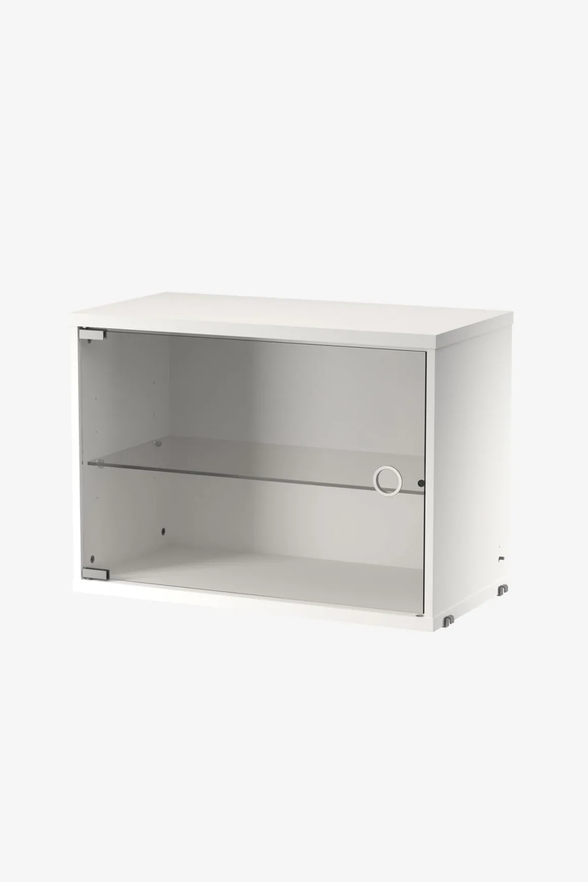 Vitrineskap fra String finnes i bredde 78/58 cm og dybde 30 cm. Den kommer med en avtagbar glasshylle slik at du kan få to seksjoner. Visuelt er det fint å bryte med et større element i hyllen din, som også gir deg mye ekstra oppbevaring og muligheten til å vise frem noe skjørt. Passer med alle gavler som er 30 cm dype. Selges pr. stk.