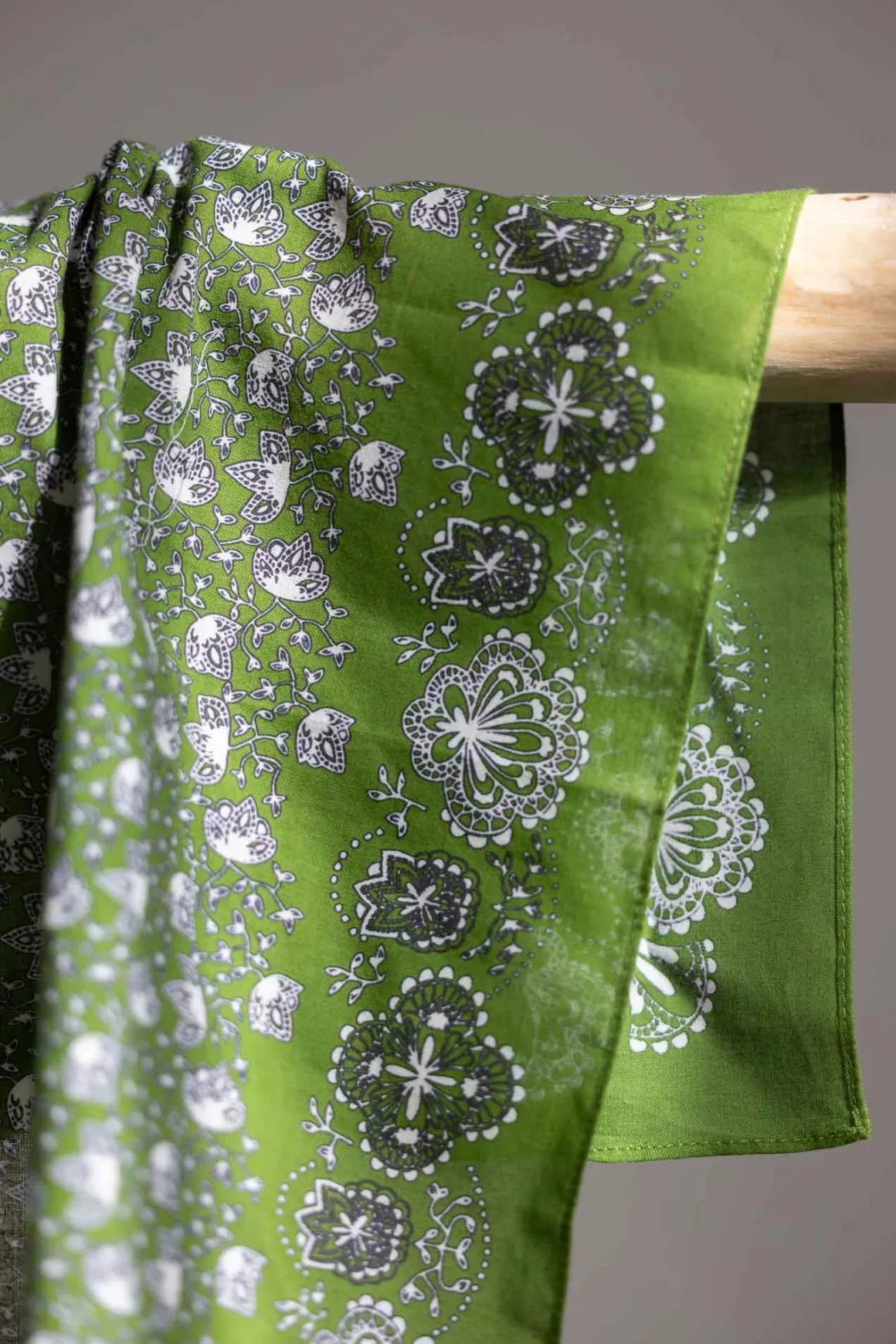 Pent, rektangulær skjerf fra det franske merket Moismont. Skjerfet er laget i India med et grønt og hvitt mønster, i lett, myk bomull. Skjerfet tilfører det lille ekstra til ethvert antrekk.