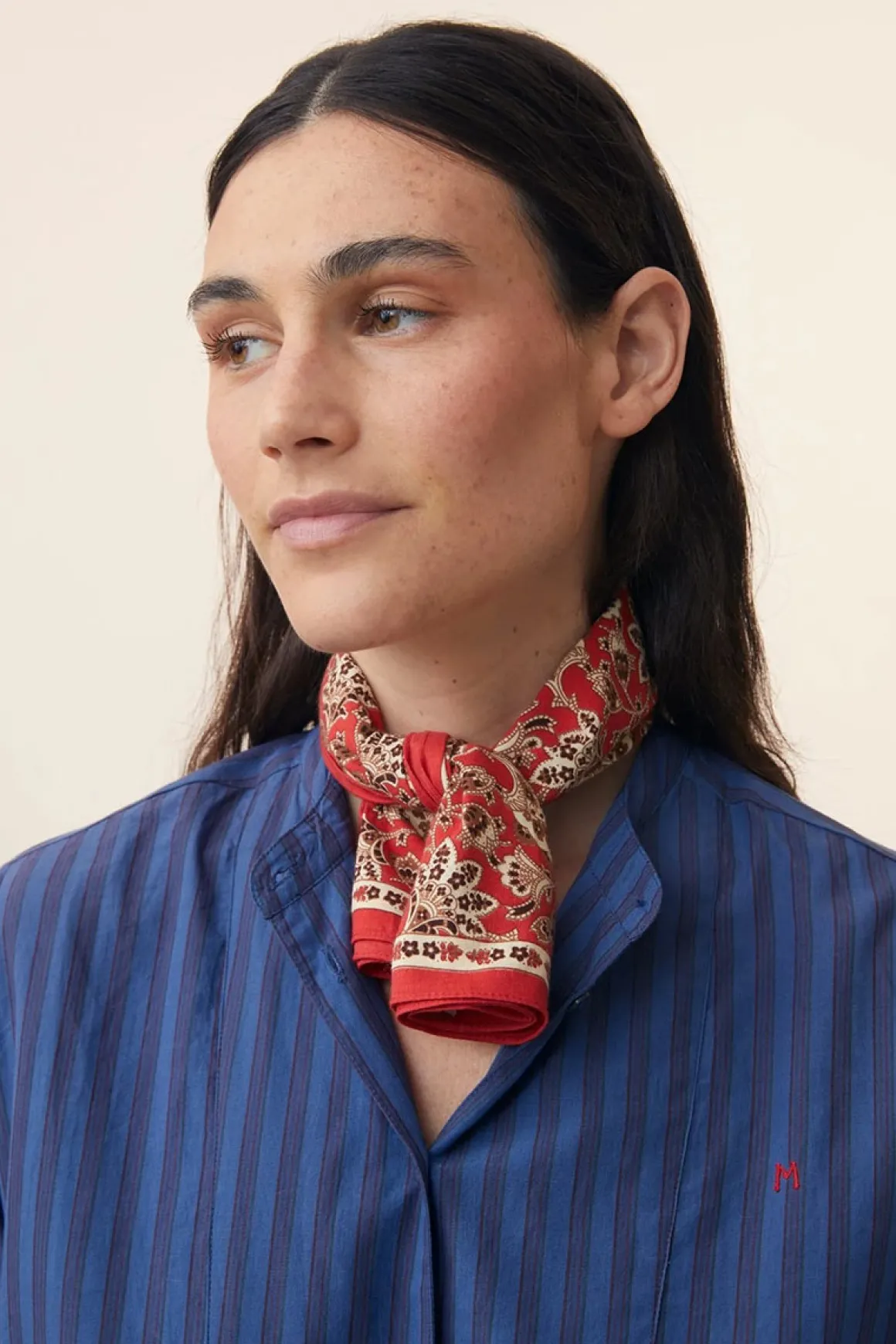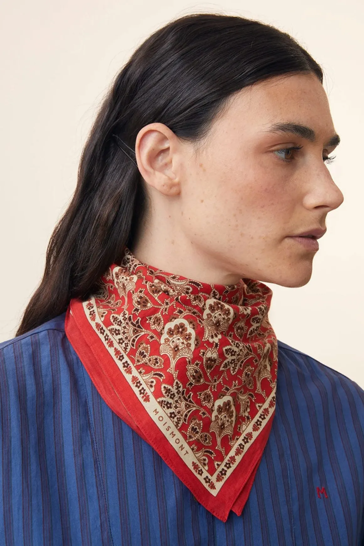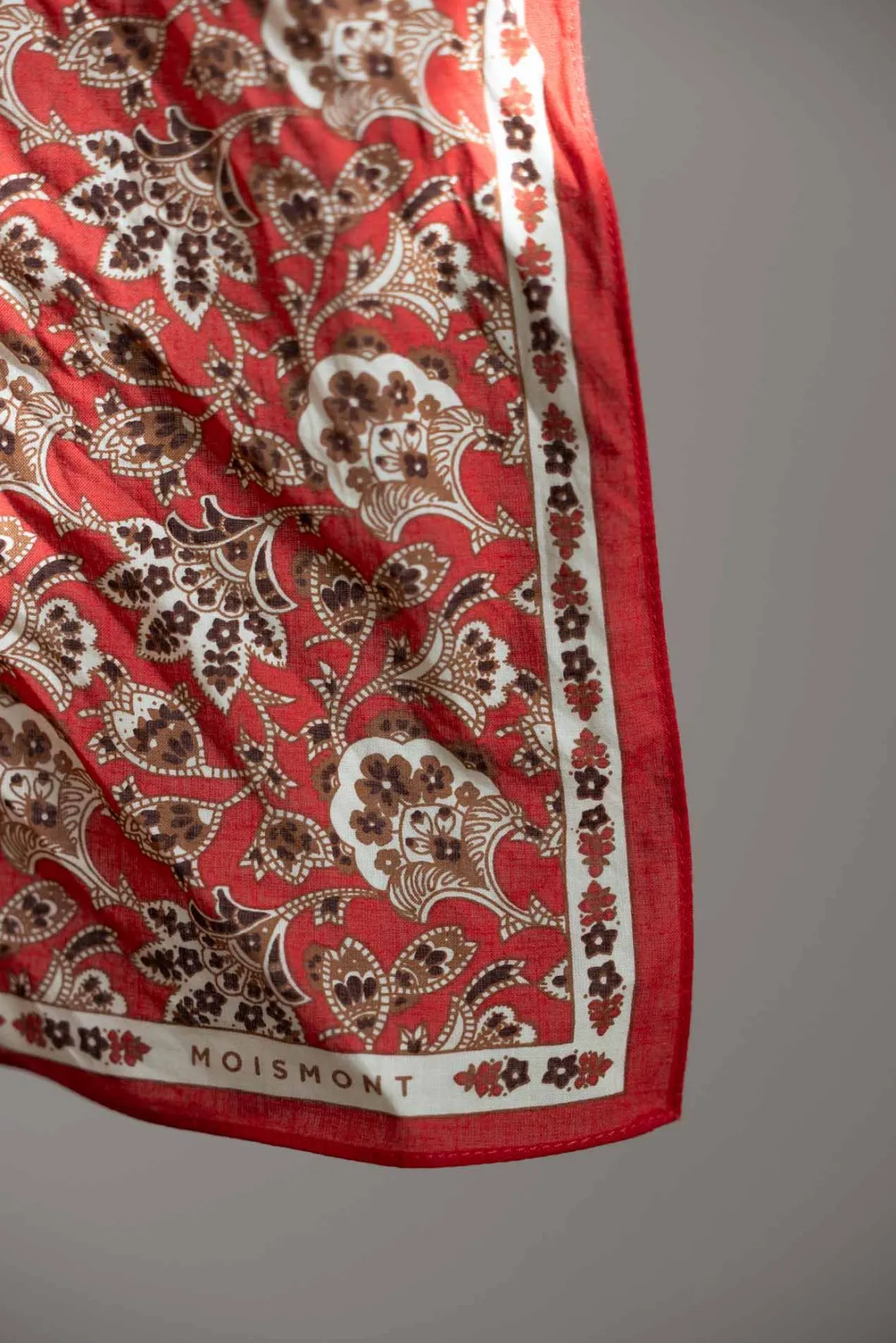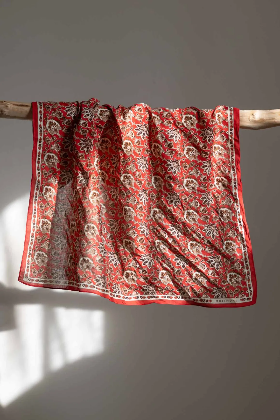 Skjerf N°764 er et kvadratisk skjerf på 65×65 cm med et paisleymønster inspirert av vårens tilbakekomst. Det er laget av lett og myk bomull, noe som gjør det behagelig å ha på. Størrelsen gjør det allsidig – bruk det rundt halsen, i håret eller knytt det på vesken for en dekorativ detalj.