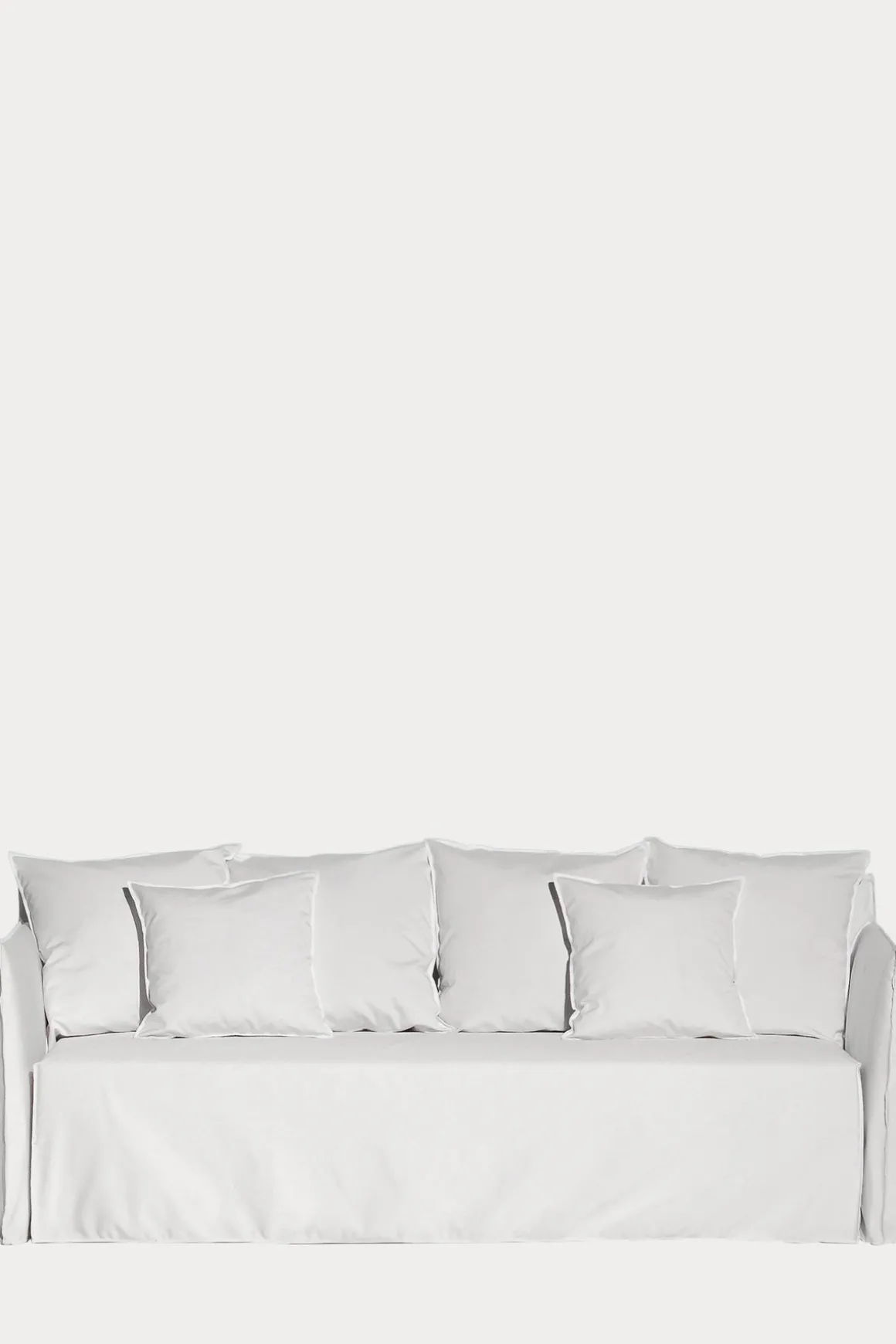 Sofa Ghost Out 10 fra italienske Gervasoni, designet av Paola Navone. Ghost Out-serien er designet med særskilte tekniske egenskaper for å motstå vann og sollys, og å opprettholde formen og utseende over lang tid. Ghost-serien er allerede ikonisk, og Ghost Out bringer det særegne designet, fremtredende komforten og allsidigheten utendørs. Sofaen kjennetegnes av det overdimensjonerte, lette trekket med dekorative sømmer som gir møbelet en ren og minimal estetikk. Mykheten framheves takket være tillegget av løse puter. Kombiner med andre møbler fra Ghost Out-serien for å komplettere looken og få den luksuriøse resort-følelsen hjemme. Sofaputene er i vannavvisende polyuretanskum, og trekket på sofaen er i polypropylen som er både vann, smuss-og muggavvisende. Stoffet er mykt, sterkt og holdbart, og trekket er avtagbart og kan vaskes på 30 grader.