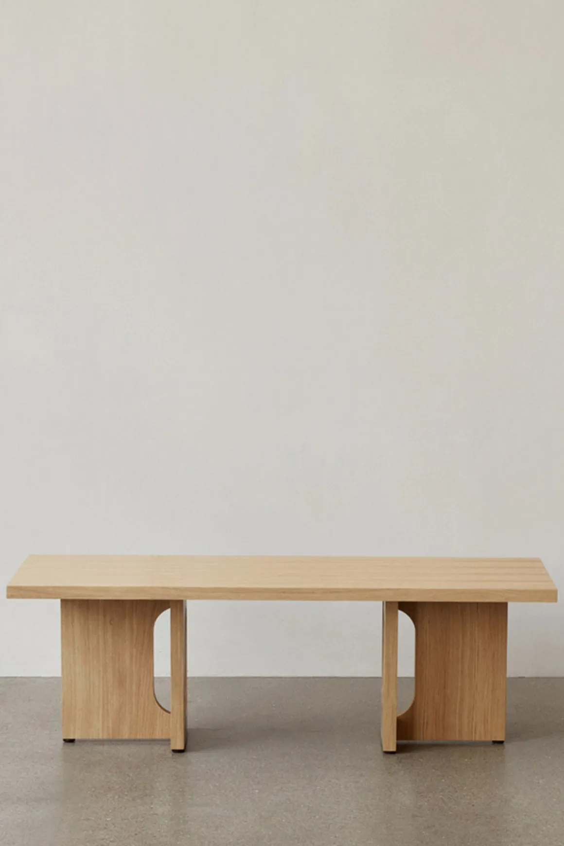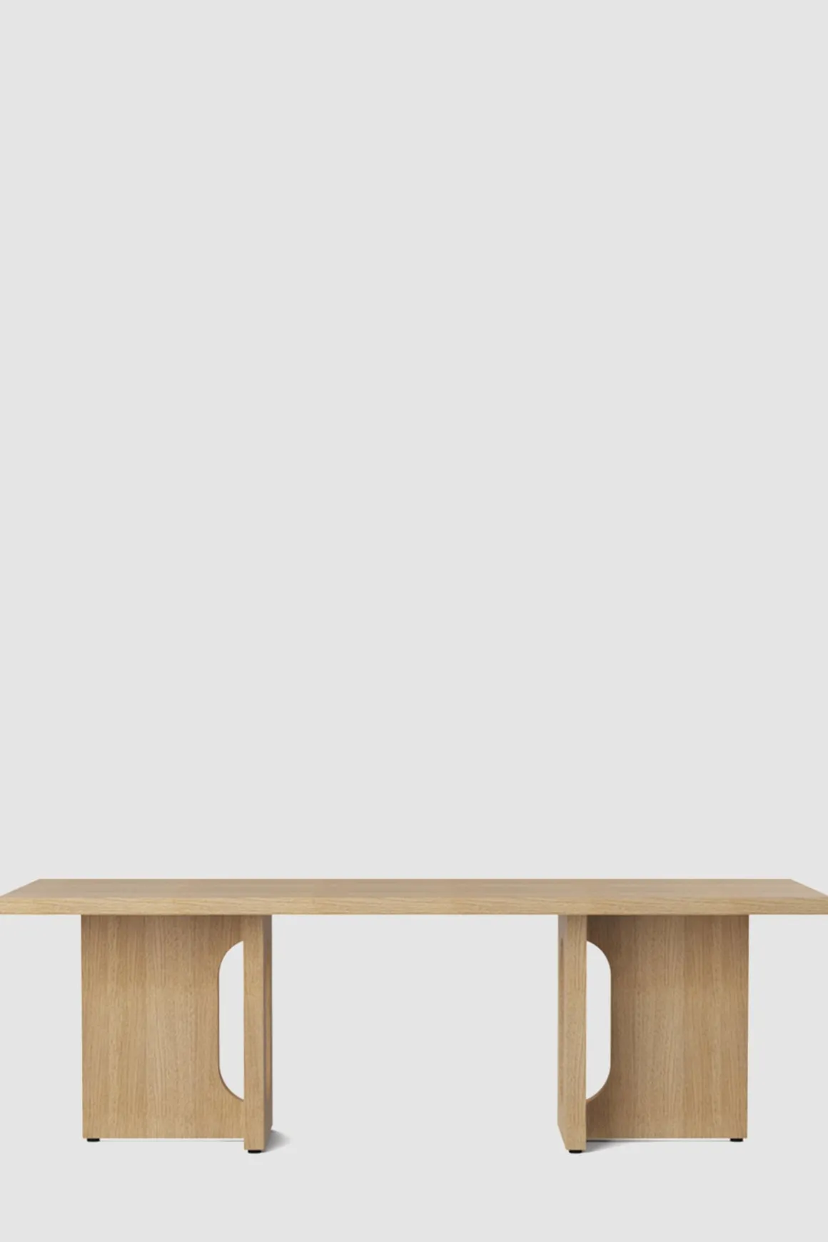 Androgyne Lounge sofabord, designet av den norske arkitekten og designeren Danielle Siggerud. Et perfekt proporsjonert sofabord med et klassisk uttrykk i eik og eikefinér. Androgyne-serien inneholder møbler med enkle silhuetter laget av raffinerte materialer som varer. Bordet finnes i flere varianter; understell i naturlig eik, mørkbeiset eik eller valnøtt og med bordplate i ulike typer stein. Bruk Androgyne Lounge Table som stuebord, som en benk med bunker av bøker eller en unik skulptur. Bordet har et varig og moderne design som du vil elske i årevis.