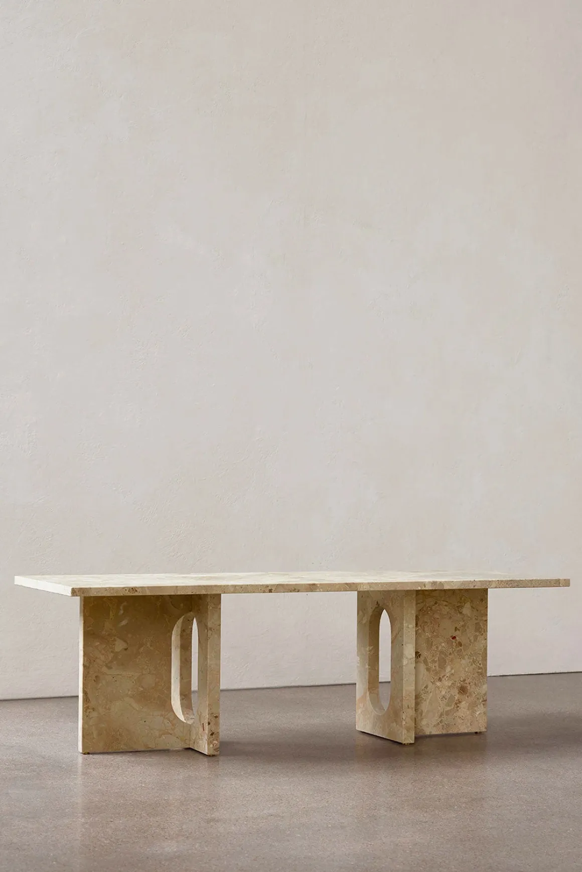 Androgyne Lounge stuebord, designet av den norske arkitekten og designeren Danielle Siggerud. Bordet er laget av kunis breccia-stein, kjent for sine karakteristiske årer og mineralfragmenter i en varm beigetone. Silhuetten er enkel og skulpturell samtidig som den er funksjonelt tilpasset et liv i hverdagen – perfekt balansert mellom det maskuline og det feminine. Androgyne-serien inneholder møbler med enkle silhuetter laget av raffinerte materialer som varer. Bordene kommer i flere varianter og materialkombinasjoner; CNC-kuttet og håndpolert stein eller CNC-kuttet MDF med eike- eller valnøttfinér. I tillegg har de CNC-kuttet stålbeslag med pulverlakkert finish. Bruk Androgyne Lounge som stuebord, som en benk med bunker av bøker eller en unik skulptur. Bordet har et varig og moderne design som du vil elske i årevis.