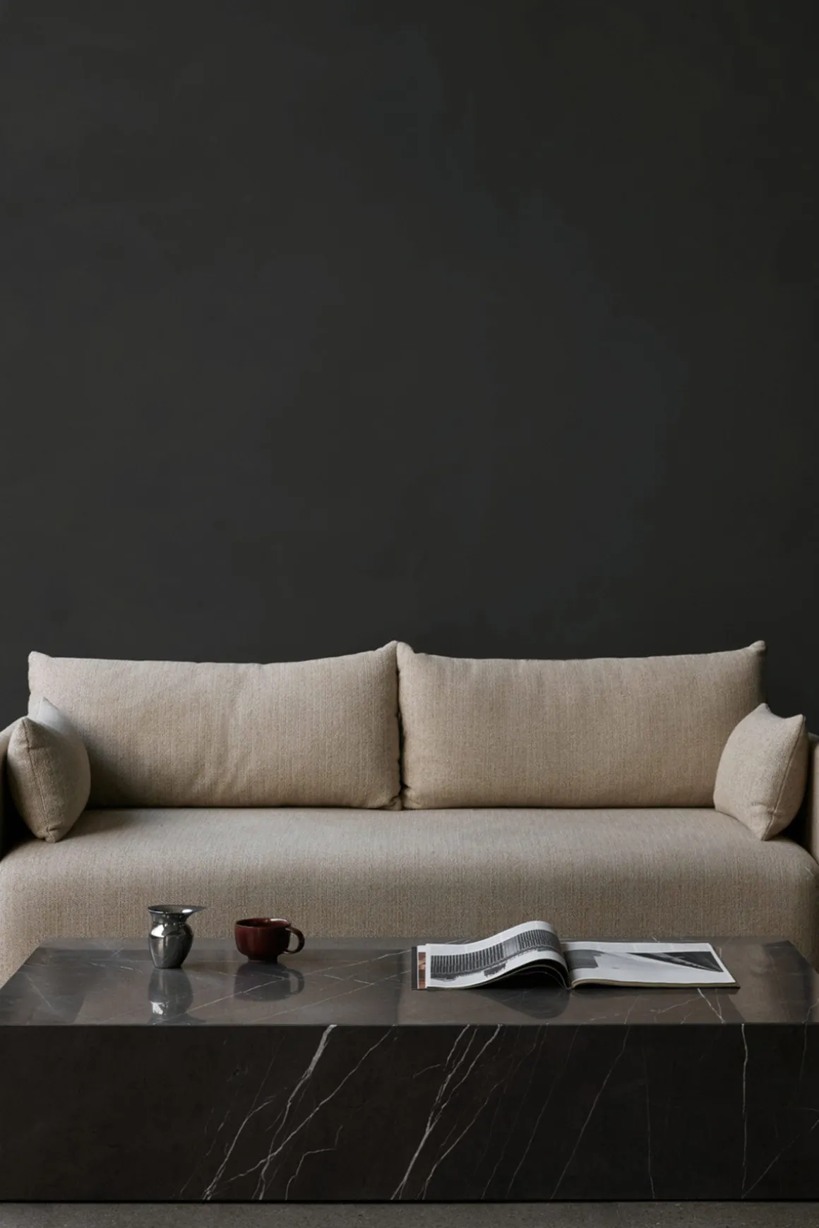 Plinth Grand sofabord er en supersized versjon av det klassiske Plinth Low-bordet. Laget i Grey Kendzo marmor og formet til et perfekt balansert rektangel, er bordet et allsidig og multifunksjonelt sofabord håndlaget i en liten fabrikk i Portugal. Bordet har en lav sokkel som gjør at det nesten ser ut som om det svever over gulvet. Plinth har også fire små ben som kan justeres i underkant av en cm i høyden. Bena synes ikke da de er satt fire cm inn fra kanten. Hver marmordel er nøye utvalgt og montert for hånd for å sikre at sidene blir satt sammen perfekt. Resultatet er at dette vakre bordet er konsistent i form og kvalitet, og samtidig unikt i marmormønsteret. Plinth tilbys i fire marmortyper med unike årringer samt Kunis Breccia-stein. Designet egner seg til en rekke bruksområder og rom. Plint Grand er ideell som både sofabord eller utstillingsbord for dekorative gjenstander. Det er også et skulpturelt objekt i seg selv, som løfter et rom med sin sofistikerte og lysreflekterende finish.