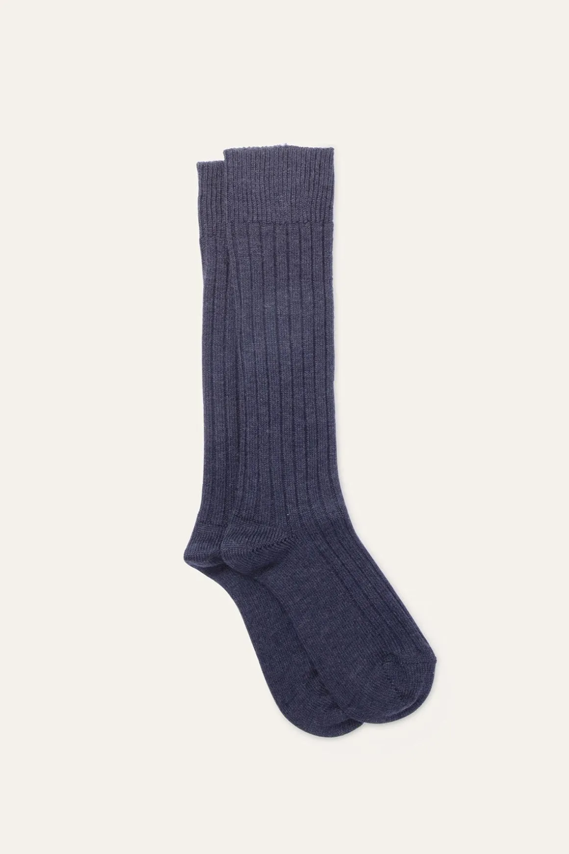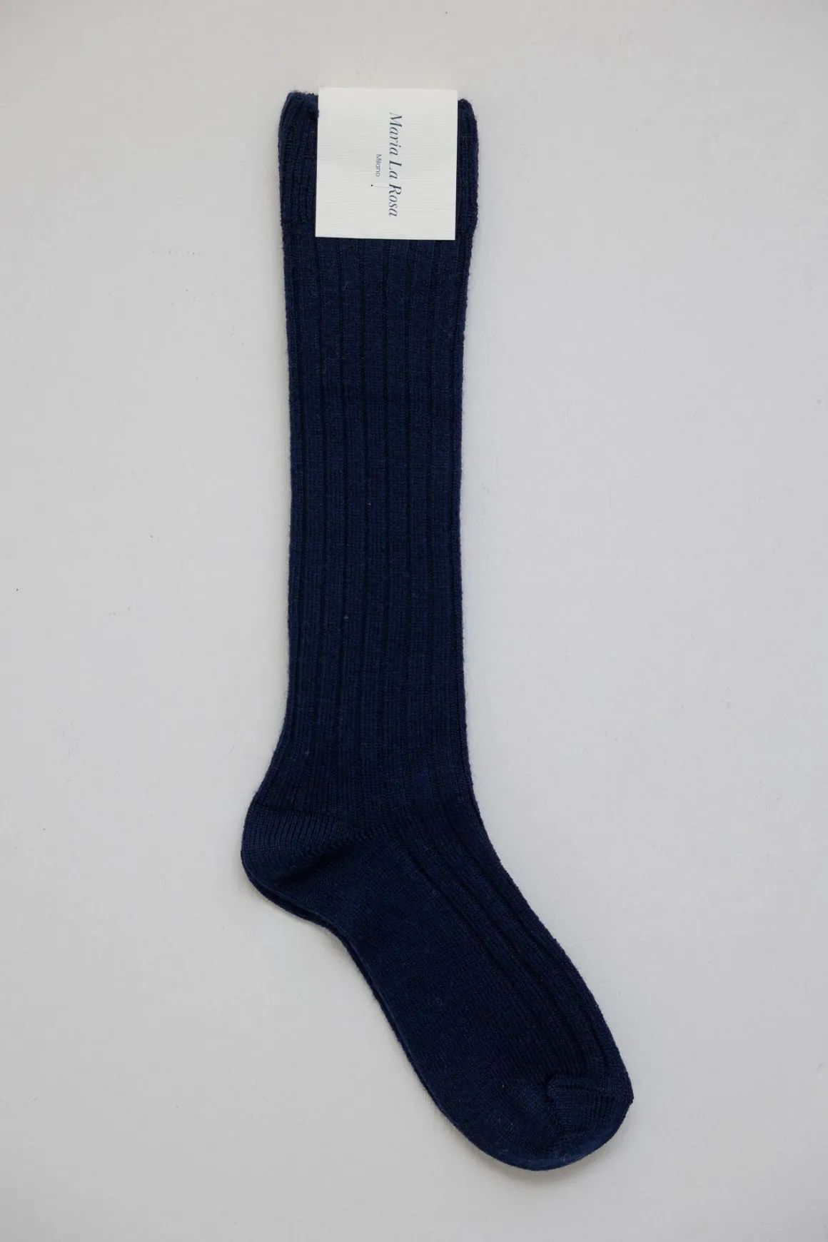 Ribbesokker fra italienske Maria La Rosa, strikket i en myk og slitesterk ullblanding med et klassisk vrangbordsmønster som strekker seg til rett under kneet. Sokkene er et luksuriøst tilskudd til sokkeskuffen du vil elske å gå i dag etter dag