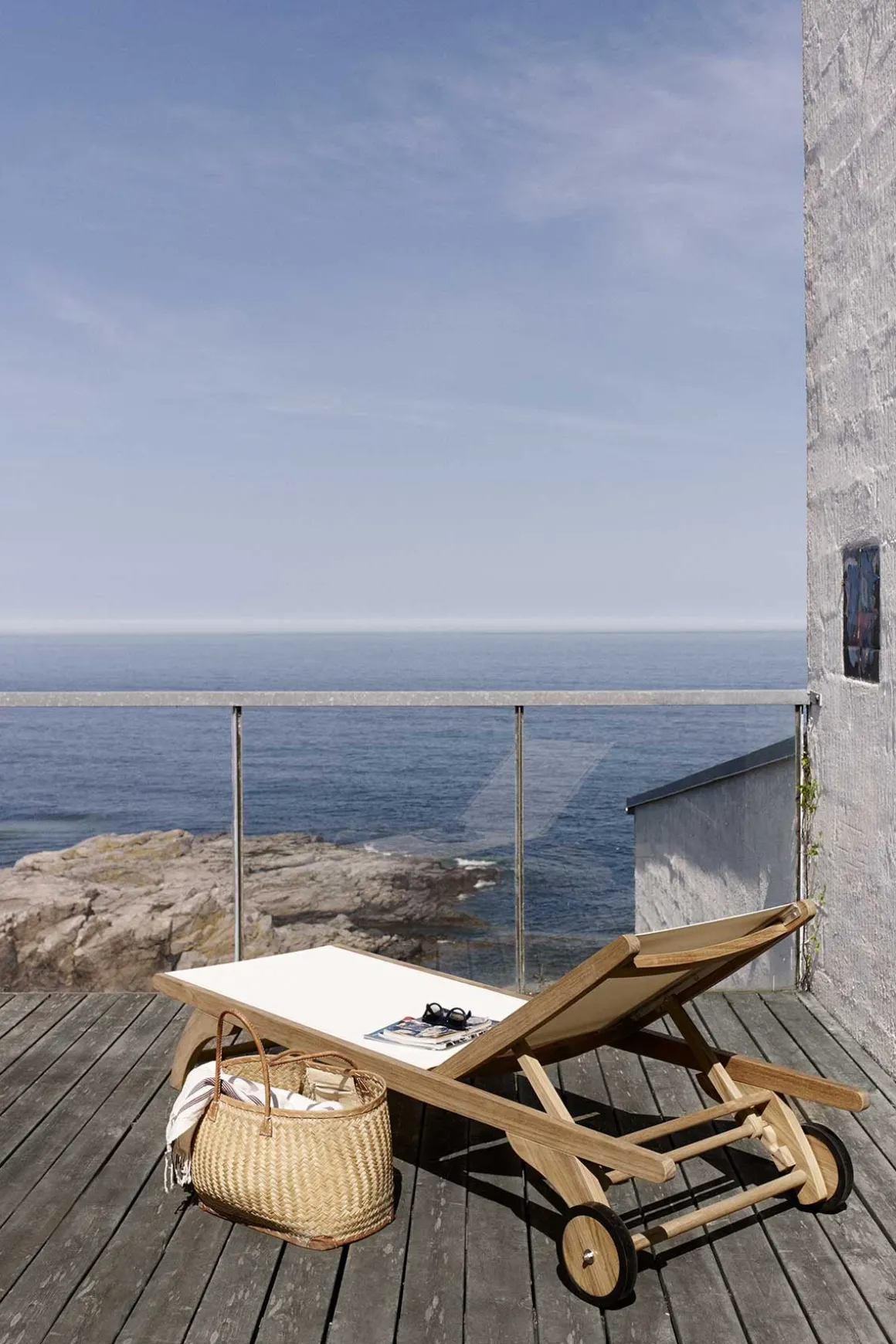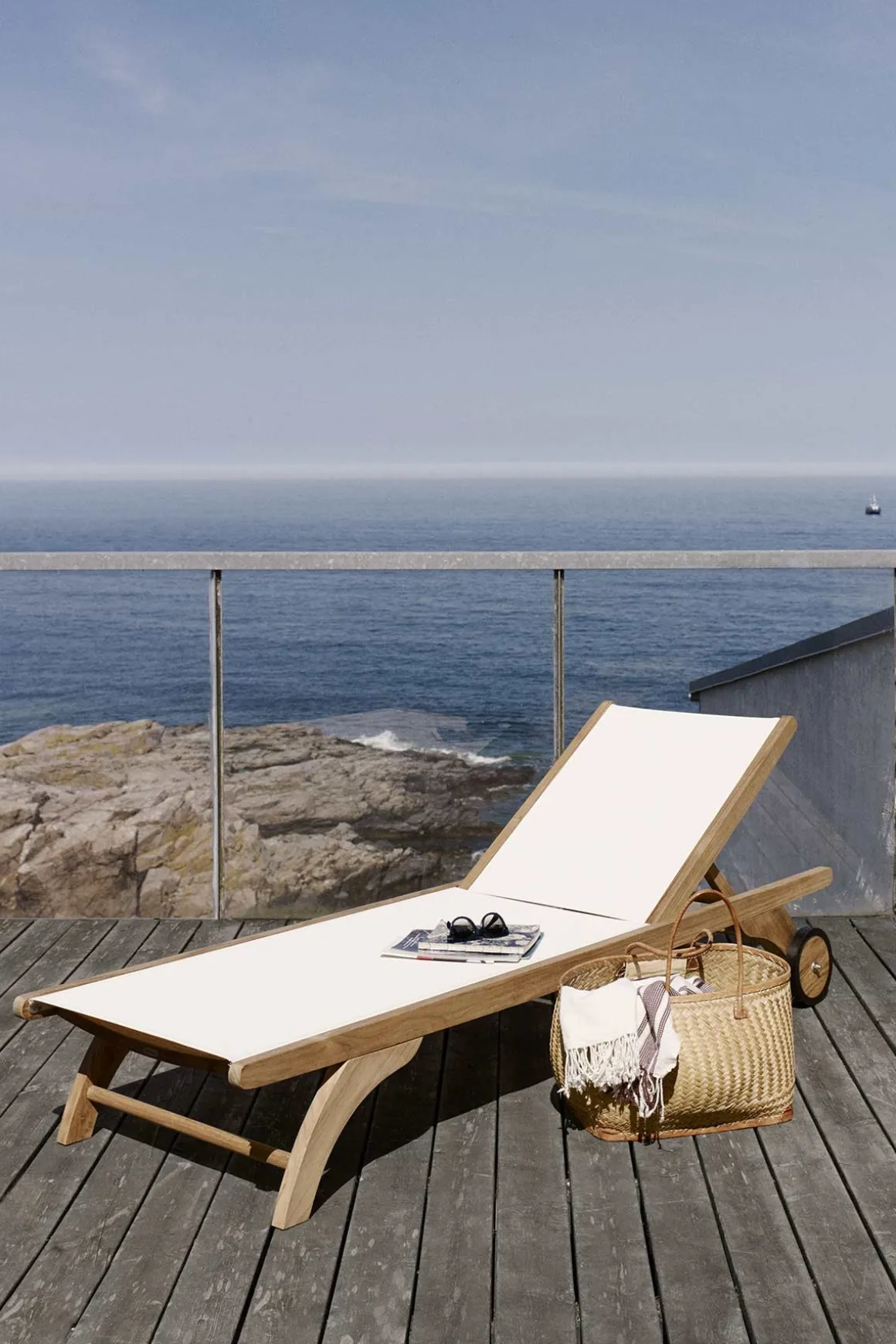 Ta avslappning seriøst i sommer med den superkomfortable og allsidige solsengen i hvit fra Skagerak. Solsengen er laget av 100% FSC teak og et slitesterkt stoff. De to hjulene gjør det enkelt å flytte rundt på solsengen. Ryggstøtten kan justeres slik at du kan ligge behagelig akkurat slik du ønsker! Over tid vil treet patinere og få den nostalgiske gråfargen mange er så glad i, men solsengen kan også behandles for å bevare den nåværende fargen.
