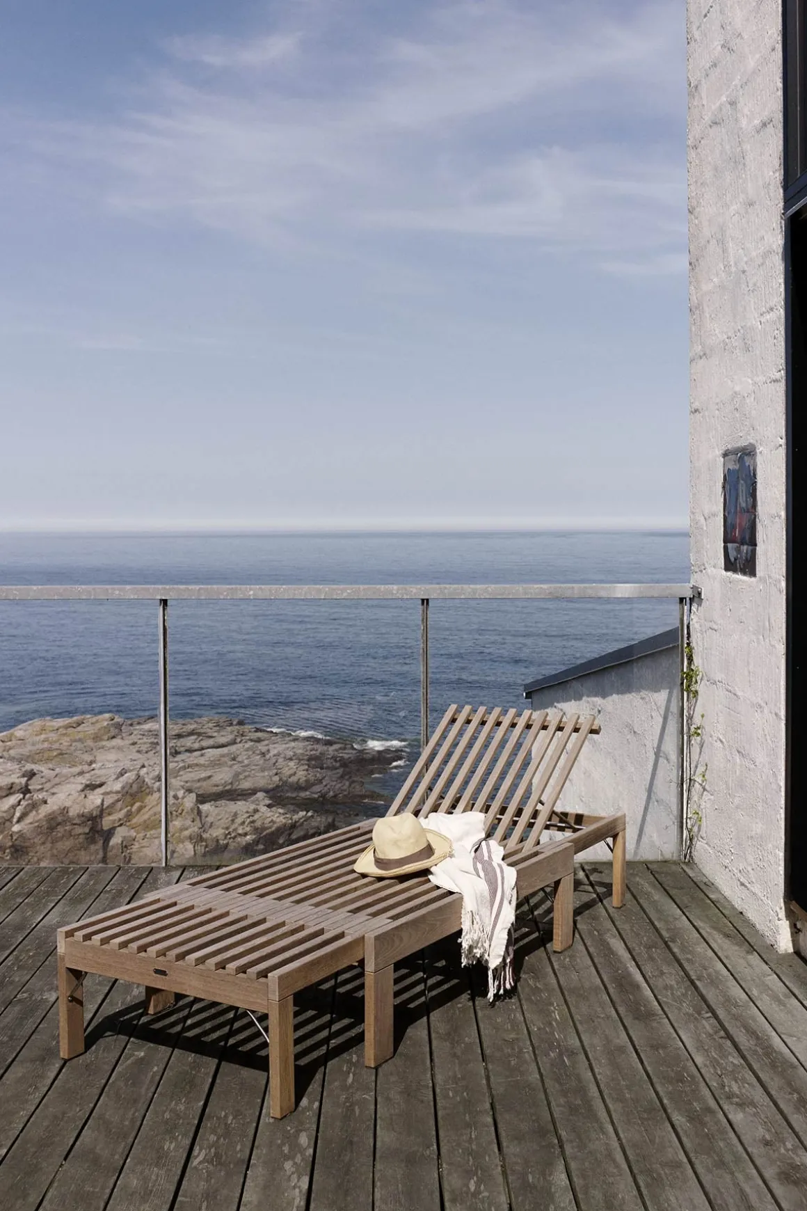 Riviera fra Skagerak har alt. Det er en solseng, en benk, et salongbord og en gjesteseng. Designet i 1990 og har blitt en utendørs klassiker, verdsatt for sin fleksibilitet og sitt allsidige design. Lamell-konstruksjonen i teak er justerbar i lengden og kan enkelt suppleres med en behagelig pute. Riviera solseng passer perfekt i hagen, på terrassen eller på hytta med utsikt utover havet. Et unikt, klassisk møbel som du vil ha glede av i årevis.