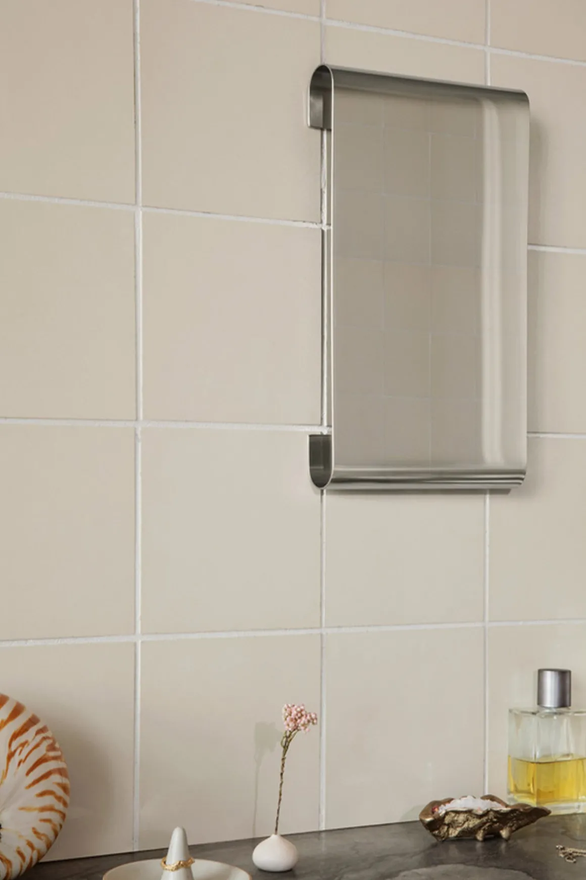 Tangent Mirror fra Ferm Living har særegne, bøyde kanter, som får det til å se ut som det svever fra veggen. Navnet på speilet gjenspeiler det unike designet der overflatene tangerer radiusen til bøyningene. På grunn av sitt slanke design, passer speilet til ethvert rom – også som et dekorativt element i stuen, på soverommet eller i gangen. Speilet kan henges både vertikalt og horisontalt og finnes i to størrelser, S og L.