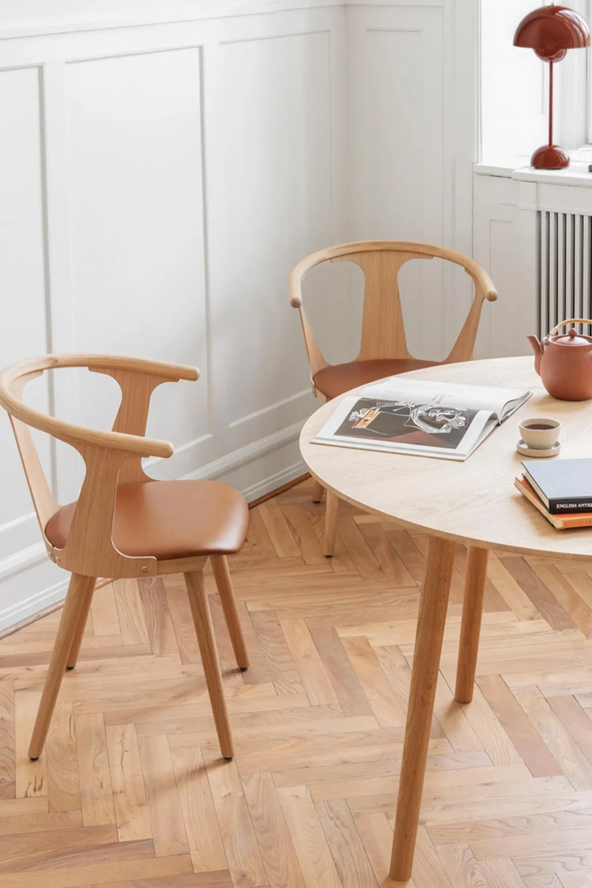 SK3 In Between spisebord, designet av finske Sami Kallio for u0026amp;Tradition. Inspirert av den skandinaviske arven innen design og møbelhåndverk, er In Between et resultat av Sami Kallios solide forankring i tradisjonelle håndverksteknikker og hans øye for geniale detaljer. Det startet med en enkelt stol som senere resulterte i en serie møbler inkludert både bord og barkrakker. Bordet er laget av solid oljet eller lakkert tre og kommer i tre forskjellige varianter. Man kan velge mellom finish i oljet eik, røkt oljet eik, sort lakkert eik eller oljet valnøtt.