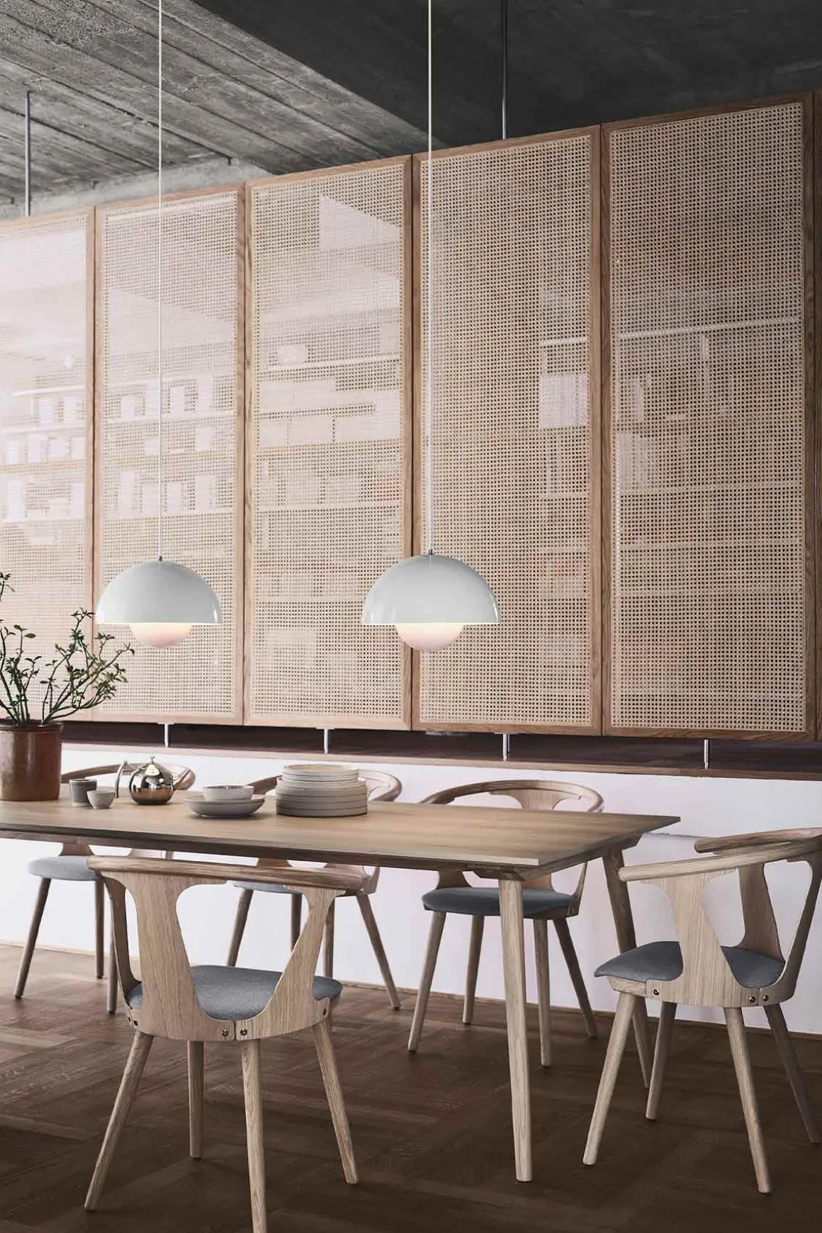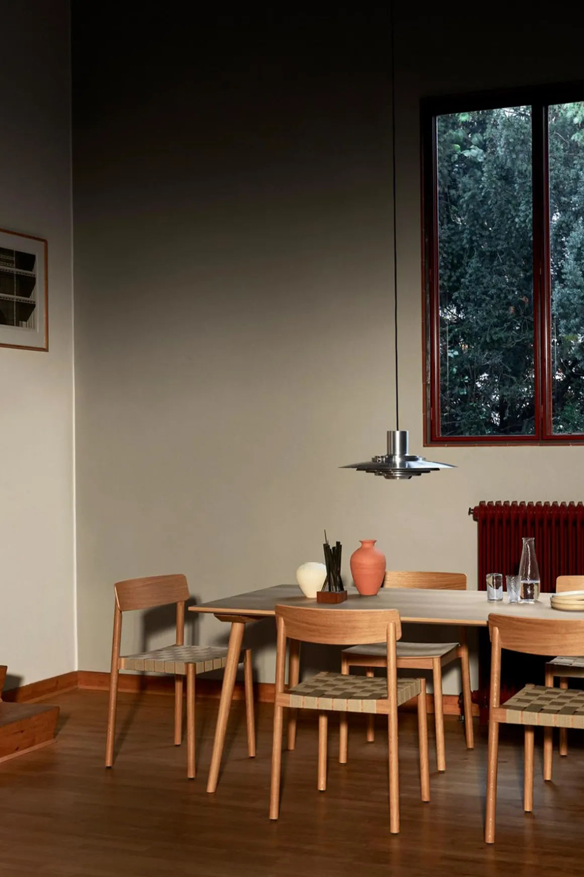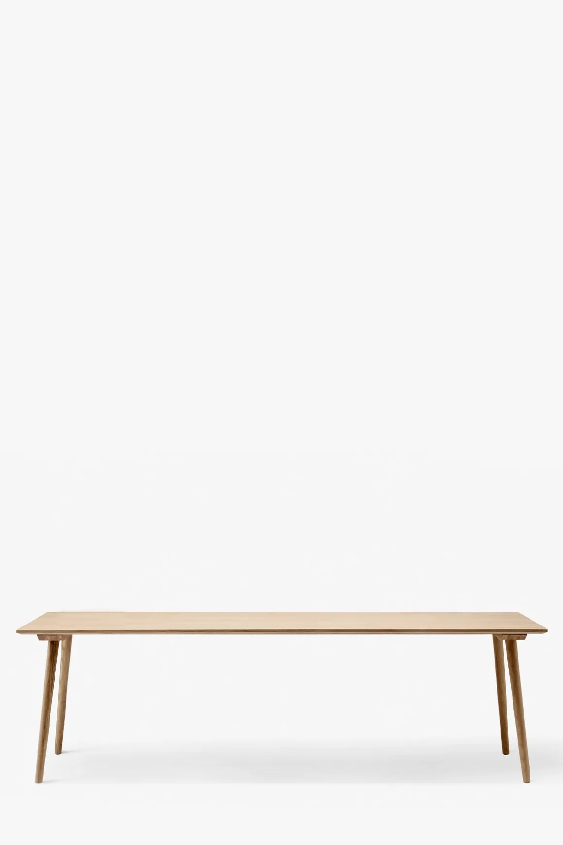 SK5 In Between spisebord, designet av finske Sami Kallio for u0026amp;Tradition. Inspirert av den skandinaviske arven innen design og møbelhåndverk, er In Between et resultat av Sami Kallios solide forankring i tradisjonelle håndverksteknikker og hans øye for geniale detaljer. Det startet med en enkelt stol som senere resulterte i en serie møbler inkludert både bord og barkrakker. Bordet er laget av solid oljet eller lakkert tre og kommer i tre forskjellige varianter. Man kan velge mellom finish i oljet eik, røkt oljet eik, sort lakkert eik eller oljet valnøtt.