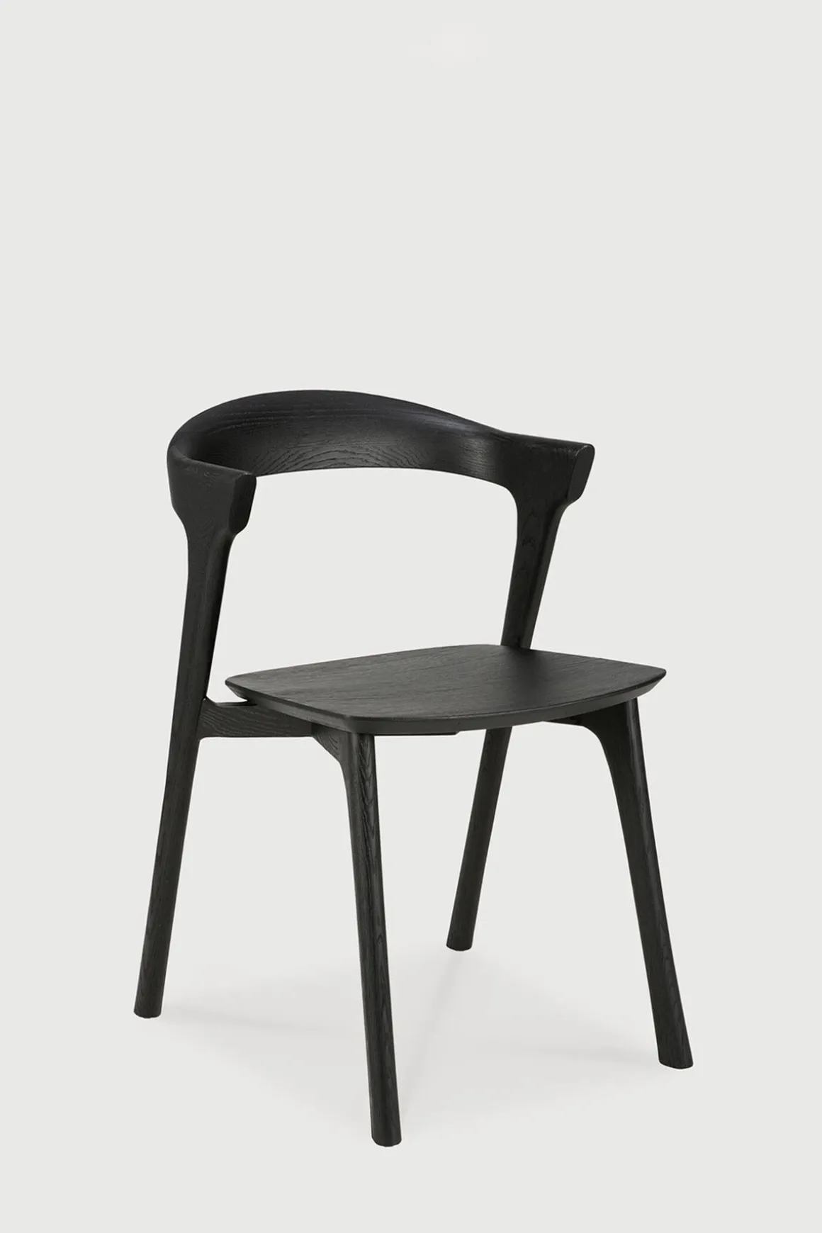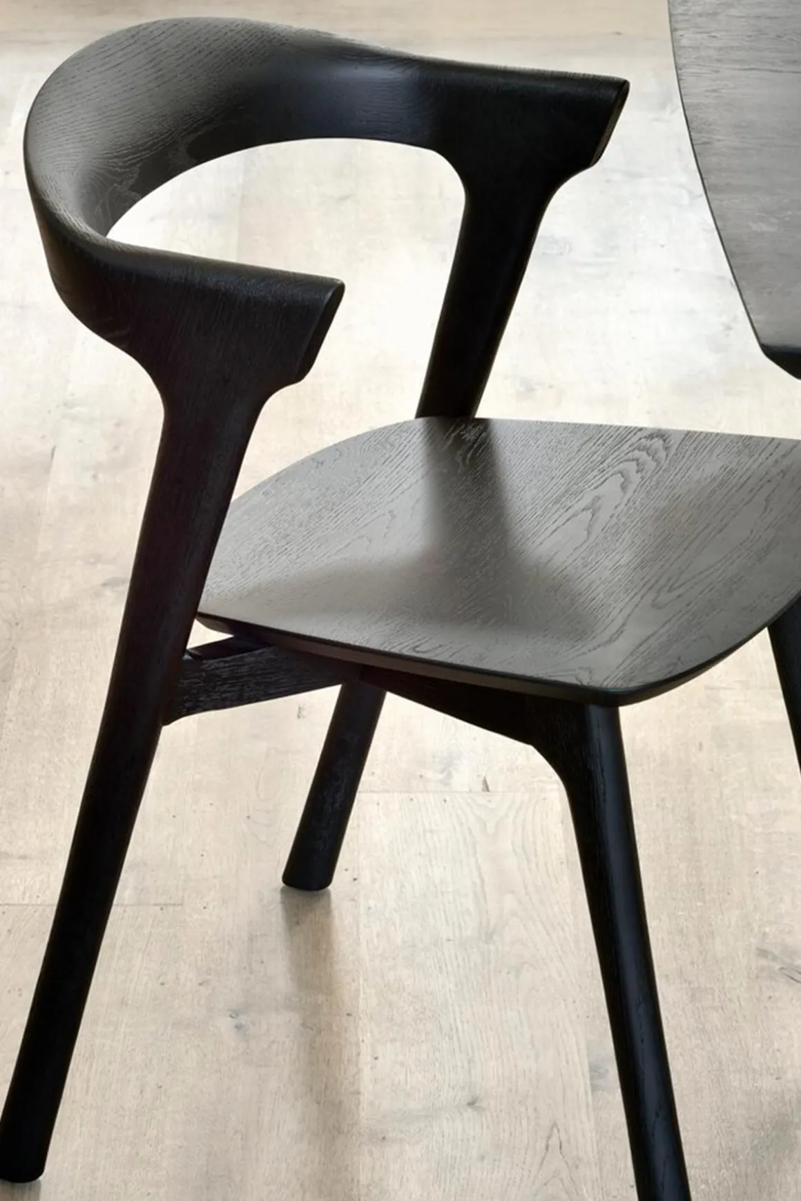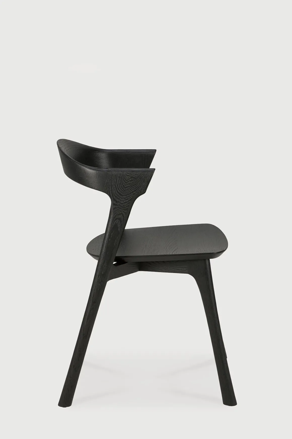 Spisestol i sort, lakkert eik fra belgiske Ethnicraft. Vi har blitt helt forelsket i produktene fra Ethnicraft, og Oak Bok stolen er intet unntak. Stolens design slår den perfekte balanse mellom skulpturell eleganse og moderne håndverk, og har et lett og moderne uttrykk.