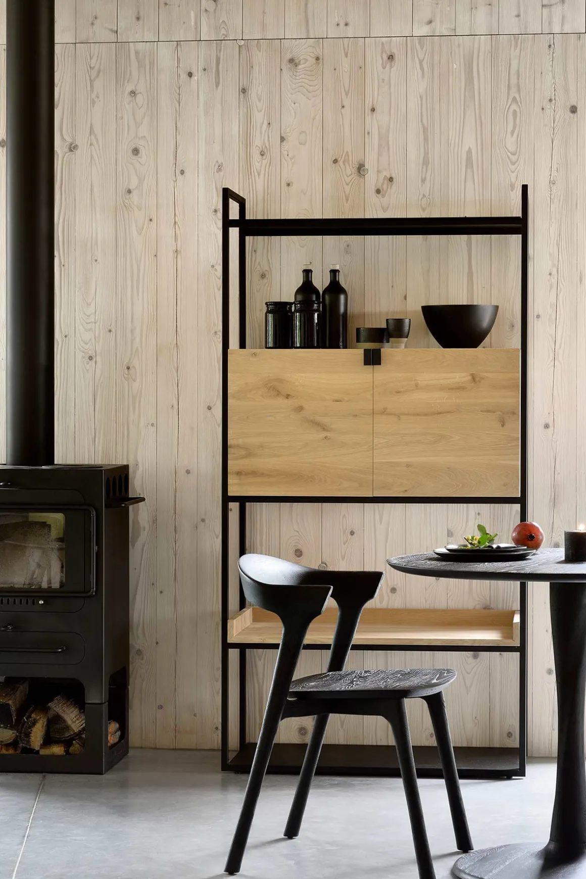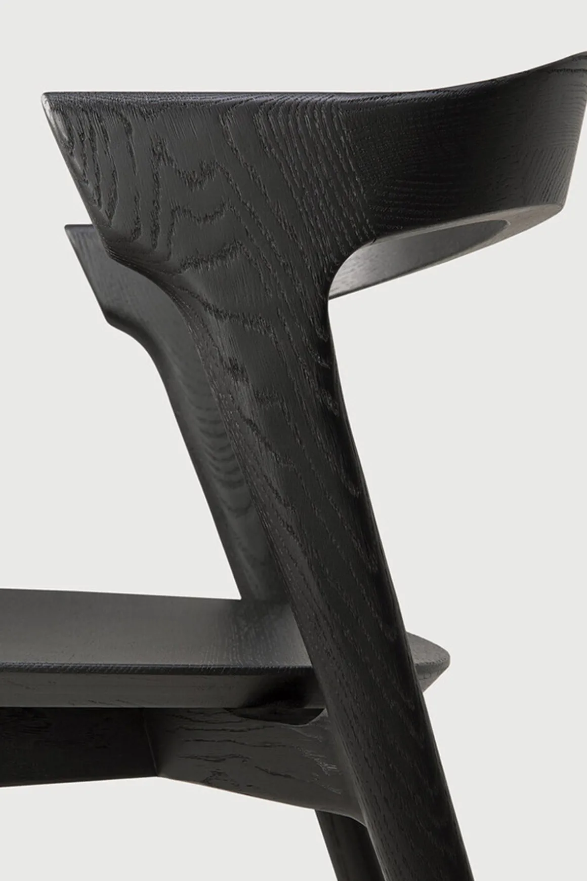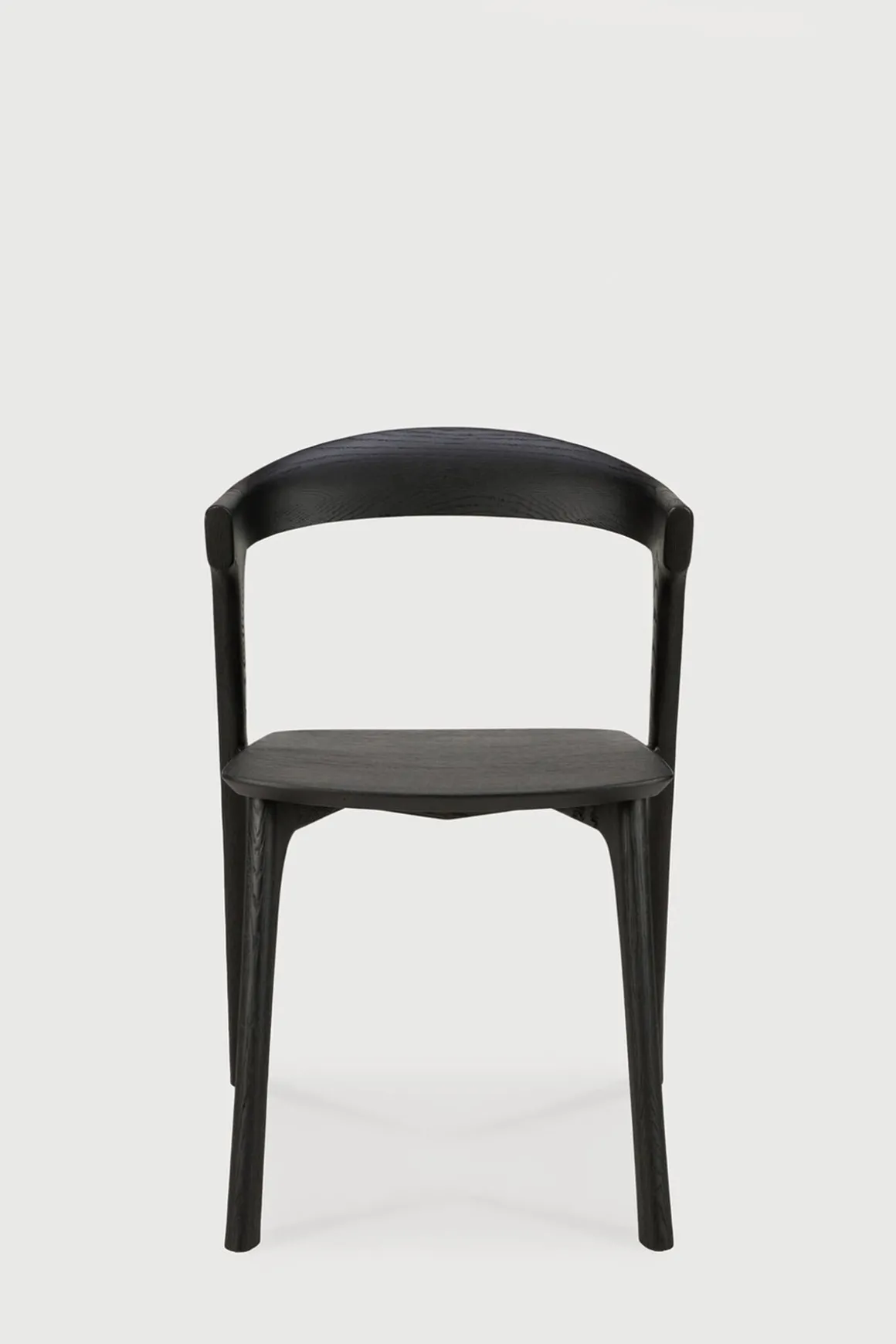 Spisestol i sort, lakkert eik fra belgiske Ethnicraft. Vi har blitt helt forelsket i produktene fra Ethnicraft, og Oak Bok stolen er intet unntak. Stolens design slår den perfekte balanse mellom skulpturell eleganse og moderne håndverk, og har et lett og moderne uttrykk.