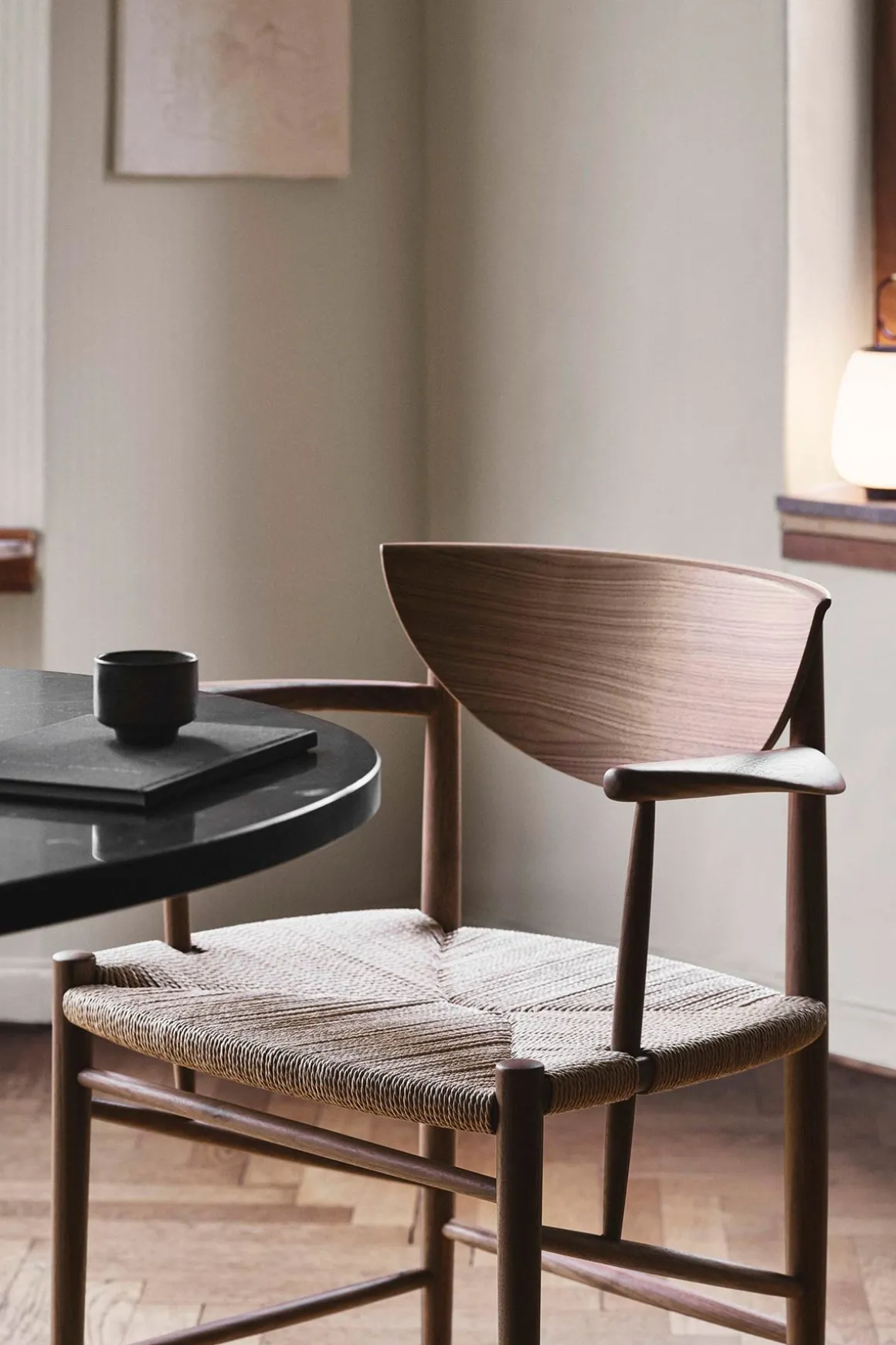 Spisestol – Drawn HM4 m/Armlener Valnøtt/Natur papirgarn