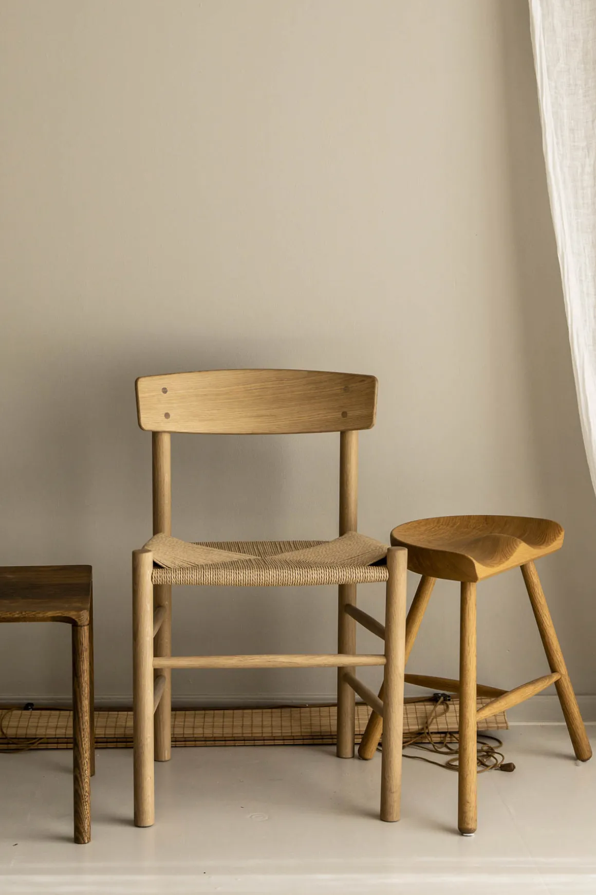 J39-stolen, bedre kjent som folkestolen, er Børge Mogensens mest berømte stol. Stolen ble designet i 1947 og fikk kallenavnet grunnet sin enkelhet og allsidighet. Folkestolen er laget i solid eik med håndflettet sete i papirgarn. Folkestolen kaprer selve essensen av Mogensens designfilosofi. Hans visjon var alltid å lage funksjonelle møbler tilgjengelig for folket uten å gå på kompromiss med kvaliteten. Stolen er på flere måter revolusjonerende og var med på å legge grunnlaget for utviklingen av konseptet «Dansk moderne» på 1950 -tallet. Dette er stolen som vil tåle tidens tann. Den dag i dag kan både nye og vintage-versjoner av J39-stolen sees i hjem rundt om i Skandinavia, så vel som resten av verden. En tidløs og ikonisk klassiker som vil passe i alle hjem.