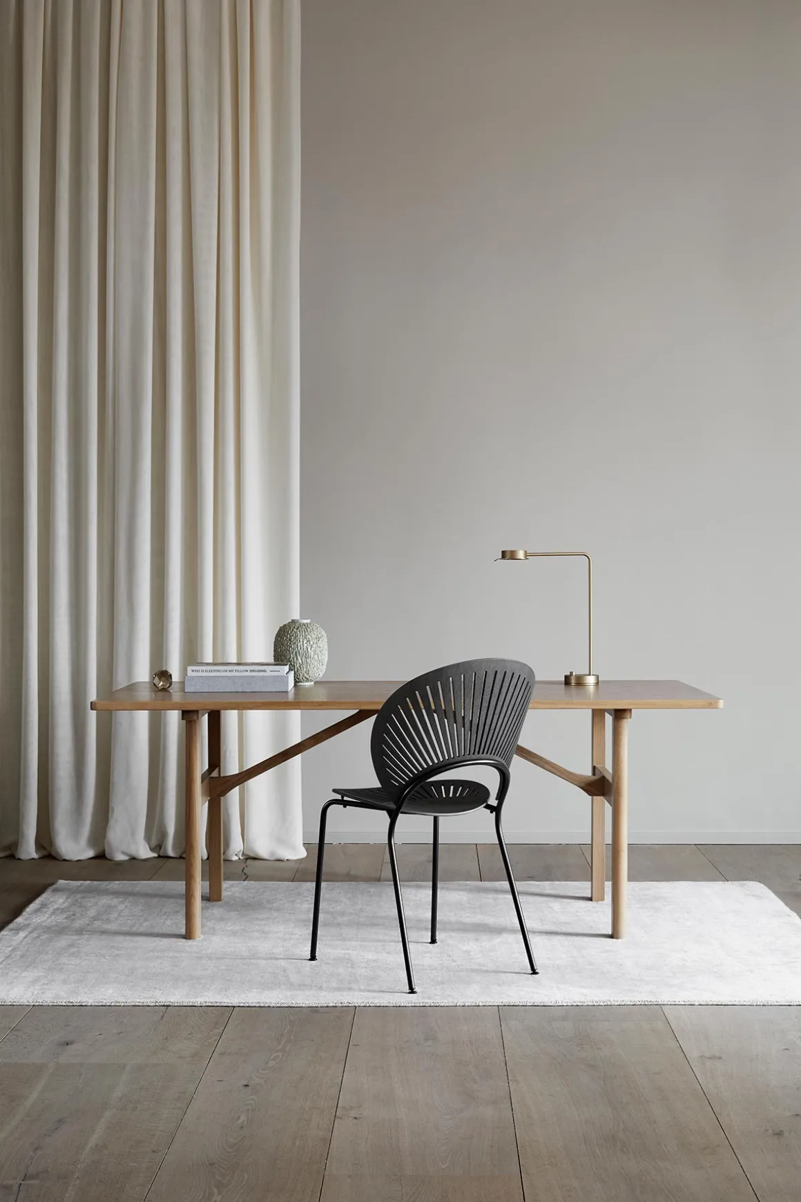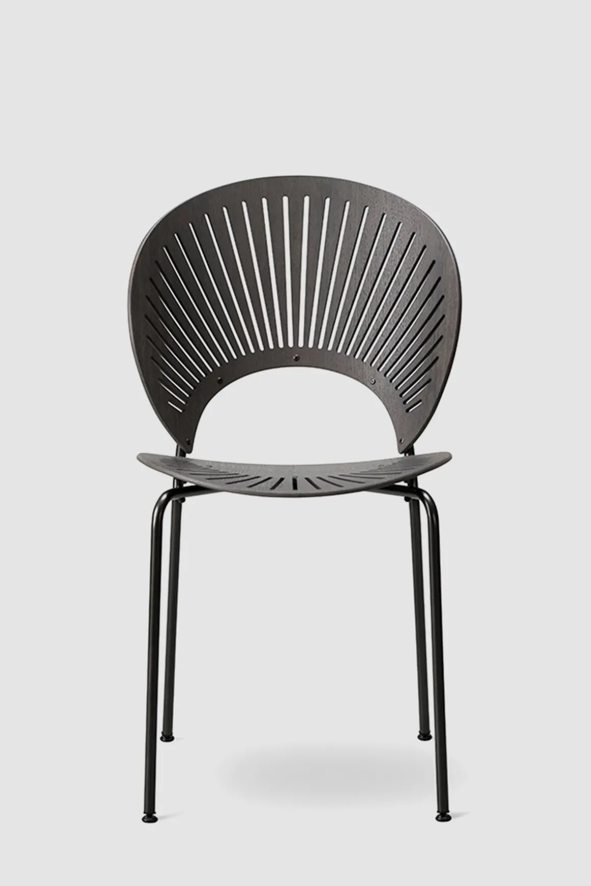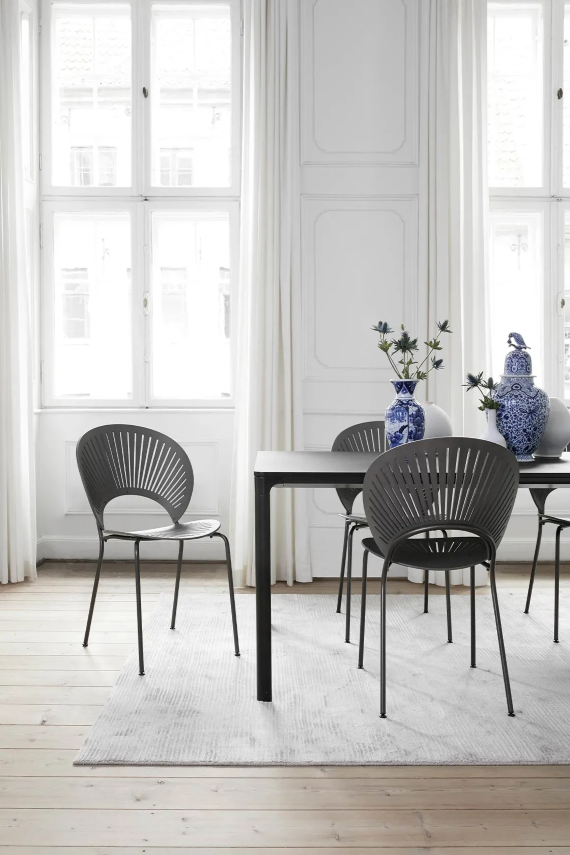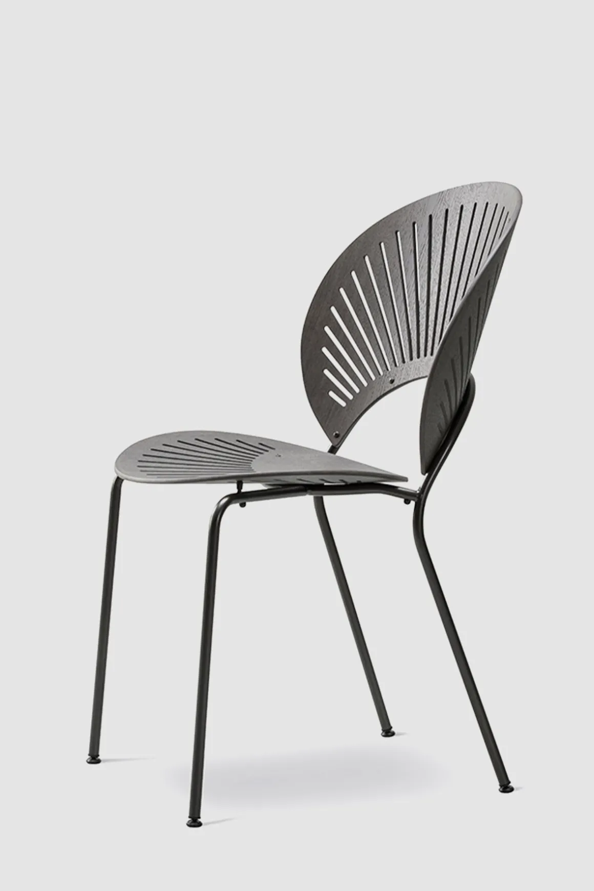 Bli kjent med ikoniske Trinidad 3398, designet av den kjente danske designeren Nanna Ditzel til Fredericias 25-års jubileum i 1993. Spisestolen er inspirert av hennes reise gjennom Trinidad og spesielt de forseggjorte utskjæringene på fasadene til «pepperkakehusene» fra kolonitiden. På samme måte som fasadene, utløser det utskårne treverket et samspill av lys og skygger, og skaper et vakkert mønster som gjør stolen unik. Trinidad kombinerer sofistikerte detaljer med uanstrengt eleganse, uten å gå på akkord med hverken komfort eller design. De særegne utskjæringer i den buede ryggstøtten og setet, er både et iøynefallende, dekorativt element, samtidig som det gjør stolen både lettere og luftigere. Spisestolen har utmerket sittekomfort og tar svært lite plass. Stolens ramme er laget av stålrør, ryggstøtten av støpt kryssfiner med presise CNC-utskjæringer, og sete og rygg er montert med nagler. Bena kommer med utskiftbare plastglidere. Denne versjonen uten armlener kan stables – hele 8 stoler i hverandre som er perfekt hvis man har begrenset med plass. Trinidad kommer i flere varianter og er tilgjengelig i behandlet eik, ask, bøk, og valnøtt. I tillegg fås understellet i fargen flint, krom og sort. Trinidads dristige design gjorde stolen til en øyeblikkelig suksess etter lanseringen i 1993 og er nå et lettgjenkjennelig designikon som passer perfekt inn i skandinaviske hjem.