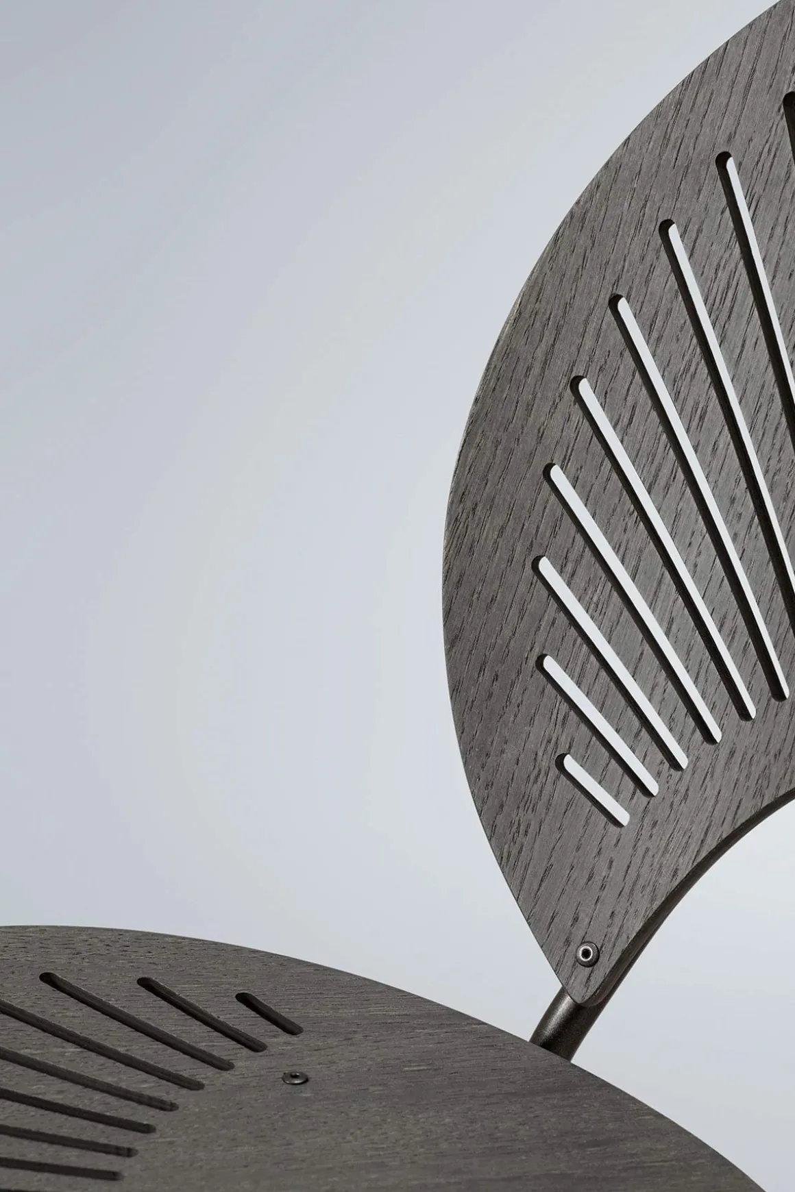 - Materiale: Stolramme av stålrør | Ryggstøtte av støpt kryssfinèr med CNC-utskjæringer.