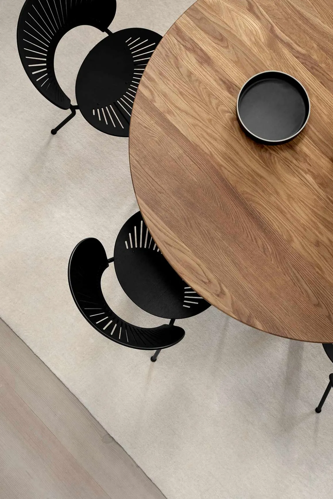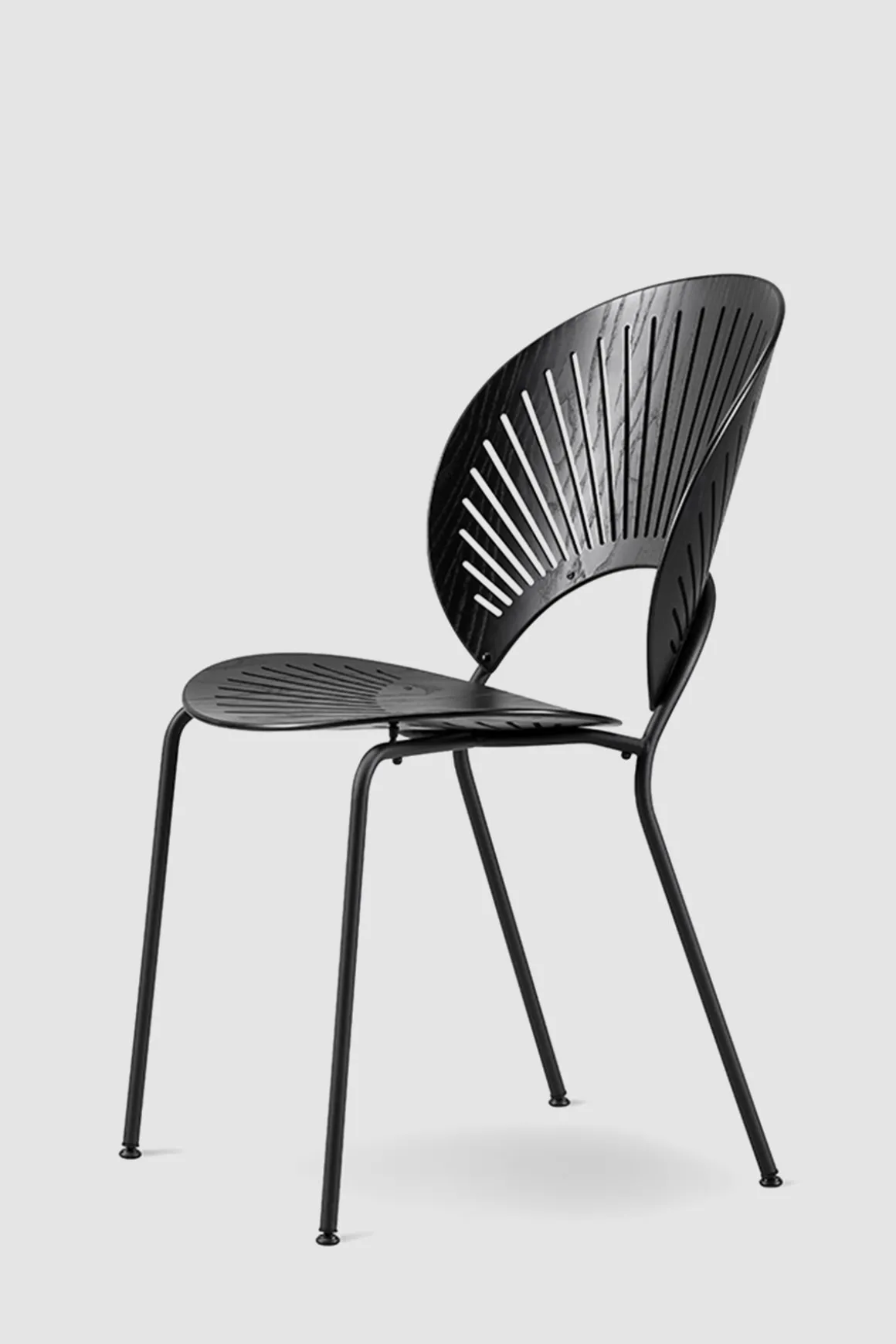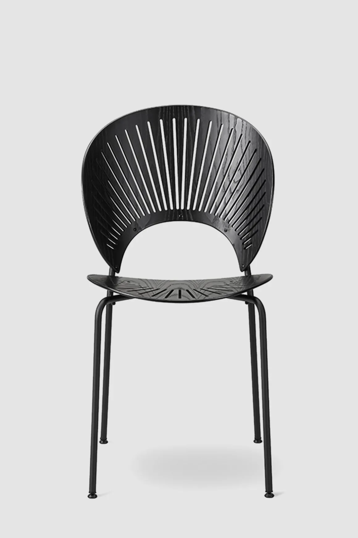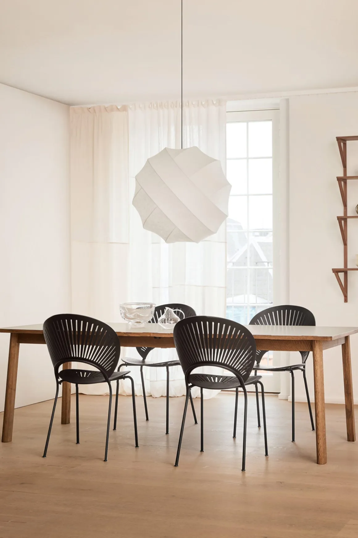Bli kjent med ikoniske Trinidad 3398, designet av den kjente danske designeren Nanna Ditzel til Fredericias 25-års jubileum i 1993. Spisestolen er inspirert av hennes reise gjennom Trinidad og spesielt de forseggjorte utskjæringene på fasadene til «pepperkakehusene» fra kolonitiden. På samme måte som fasadene, utløser det utskårne treverket et samspill av lys og skygger, og skaper et vakkert mønster som gjør stolen unik. Trinidad kombinerer sofistikerte detaljer med uanstrengt eleganse, uten å gå på akkord med hverken komfort eller design. De særegne utskjæringer i den buede ryggstøtten og setet, er både et iøynefallende, dekorativt element, samtidig som det gjør stolen både lettere og luftigere. Spisestolen har utmerket sittekomfort og tar svært lite plass. Stolens ramme er laget av stålrør, ryggstøtten av støpt kryssfiner med presise CNC-utskjæringer, og sete og rygg er montert med nagler. Bena kommer med utskiftbare plastglidere. Denne versjonen uten armlener kan stables – hele 8 stoler i hverandre som er perfekt hvis man har begrenset med plass. Trinidad kommer i flere varianter og er tilgjengelig i behandlet eik, ask, bøk, og valnøtt. I tillegg fås understellet i fargen flint, krom og sort. Trinidads dristige design gjorde stolen til en øyeblikkelig suksess etter lanseringen i 1993 og er nå et lettgjenkjennelig designikon som passer perfekt inn i skandinaviske hjem.