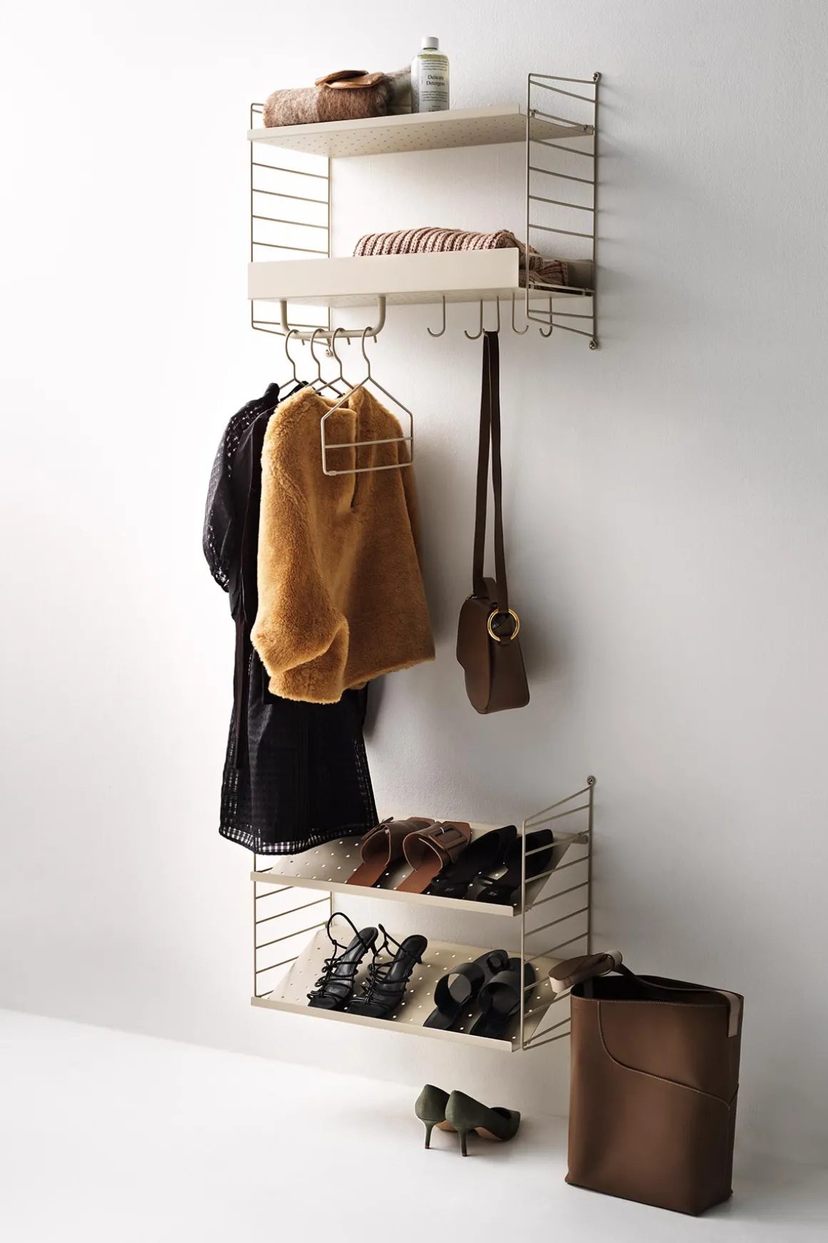Klesstangen selges som en enkeltdel du praktisk kan kombinere i ditt String® System. Stengene er tilgjengelige i følgende bredder: 30 cm, 58 cm og 78 cm. Stengene med bredder på 58 cm og 78 cm må monteres langs bredden på hyllen, mens stangen som måler 30 cm kan monteres både langs hyllens bredde og dybde, forutsatt at hyllens dybde er 30 cm. Stengene øker funksjonaliteten og muliggjør flere og kreative lagringsløsninger. Optimalt tilbehør for gangen eller garderobekombinasjonen, da de gjør det mulig å legge til kleshengere fra String System. Det er også et flott sted å henge skjerf, sjal og hundebånd. Hver pakke inneholder en stang.
